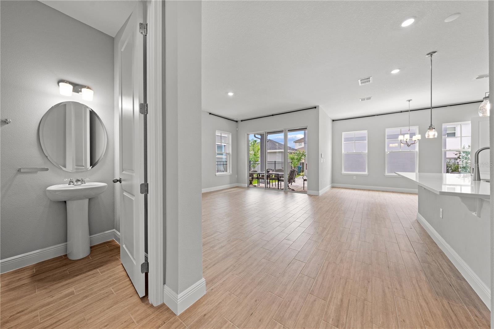 - High Ceilings, Kitchen/Family Room Combo, Open Floorplan, Primary Bedroom Main Floor