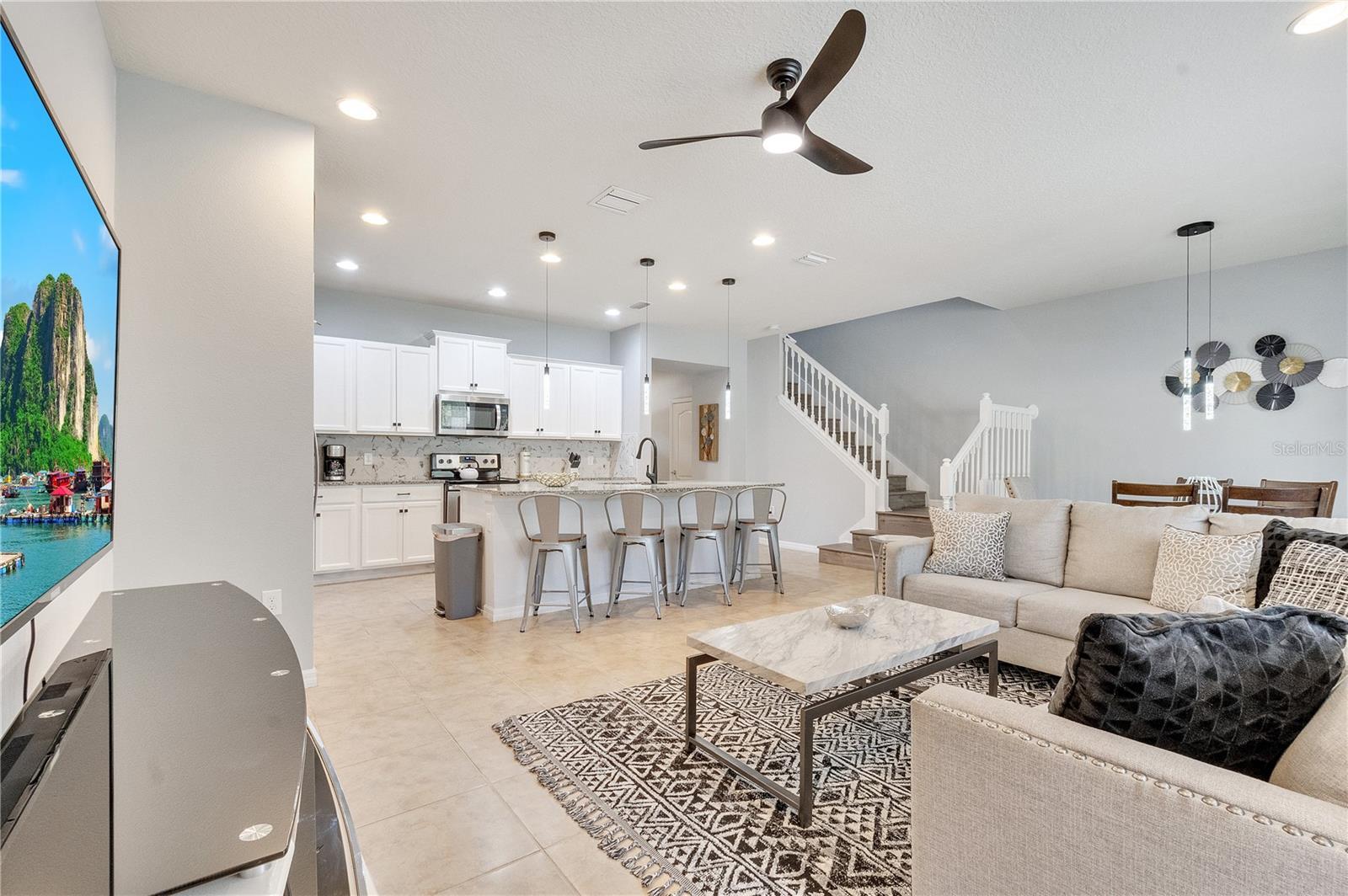 ***RECENTLY RENOVATED*** Don't miss the opportunity to enjoy a resort living style in this magnificent 5 bedroom 4 1/2 bathroom townhome with a private pool located at Windsor at WestSide Resort. This gated community offers wonderful resort style amenities, such as pool, lazy river, arcade, splash pad, basketball court, and more. The community constantly have events for guests to enjoy and it is strategically located close to the Disney parks. The house features 1 bedroom downstairs and 4 bedrooms upstairs of which 2 are masters bedrooms. It also has a loft and it is professionally decorated and furnished.. This house was recently painted and the kitchen was renovated with new backsplash and cabinetry painting. Also, Carpet from the common areas was replaced with high quality vinyl floors. it has new light fixtures and fans. curtains, and many more upgrades. No rear neighbors as the back of the house faces a conservation area.