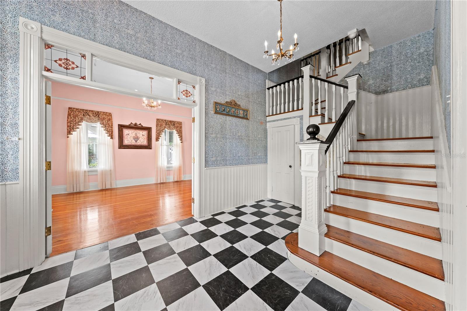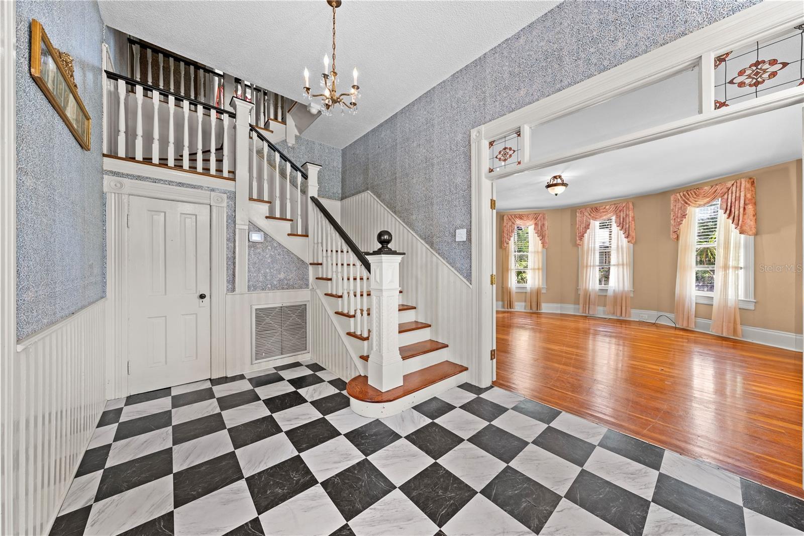 Step into timeless elegance with this remarkable 4-bedroom, 3-bathroom Colonial home offering 3,492 square feet of living space. As you enter, you’re greeted by a striking checkered-floor foyer with a grand staircase that sets the tone for the home’s classic charm. The first floor boasts a formal living room filled with natural light, a spacious dining room perfect for gatherings, a large kitchen ready for culinary adventures, and a versatile bonus room ideal for an office or study. Upstairs, you’ll find all four bedrooms, including a generous primary suite, two full bathrooms, additional office space, and a large balcony overlooking the front of the home perfect for enjoying your morning coffee or evening sunsets. Sitting on over half an acre, this property offers endless opportunities for outdoor living. The expansive backyard features a huge in-ground pool, a large patio for entertaining, and a detached three-car garage. A charming carriage house adds even more potential, easily convertible into a private guesthouse or in-law suite. Located just minutes from Lakefront Park, restaurants, shopping, entertainment, and hospitals, this home blends historic character with modern convenience.