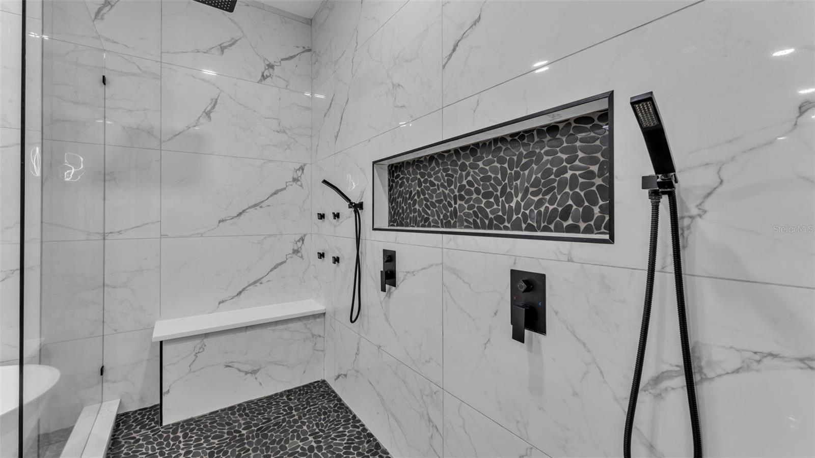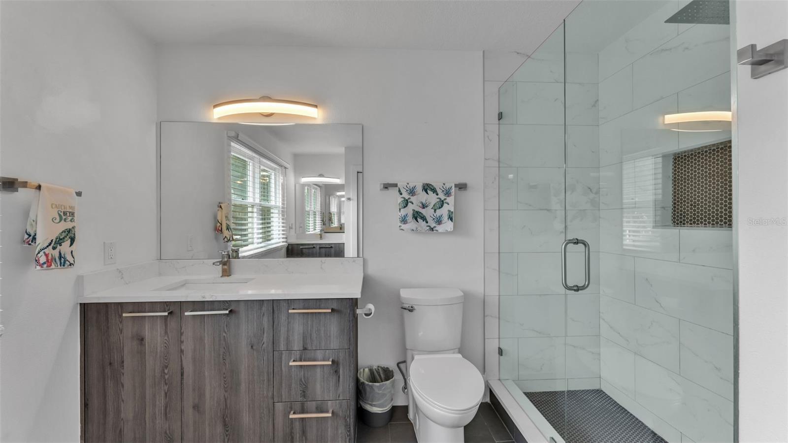Welcome to Regal Cove – Modern Luxury Meets Country Charm! Imagine living in the exclusive, gated community of Regal Cove, where this fully renovated custom home offers both elegance and privacy. Set on nearly half an acre (.49), this residence boasts one of the largest private screened lap pools in the area with a heated spa—perfect for entertaining or relaxing year-round. From the moment you arrive, the long driveway and welcoming front porch set the tone for comfort and sophistication. Step inside the brand-new modern renovation featuring an open concept design and tasteful finishes throughout. The spacious family room is highlighted by an elegant tile accent wall with an electric fireplace and French doors overlooking the pool and mature tree views. The gourmet kitchen is a showpiece with a waterfall island, drop-down range system, top-tier appliances, custom cabinetry, built-in double oven/microwave, wine cooler, and coffee station. A true chef’s delight, it’s designed for hosting family and friends with ease. The primary suite, located on the first floor, offers a stunning walk-in closet and a spa-like bathroom with a freestanding soaking tub, double vanities, separate water closet, and an oversized double-head shower. Upstairs, you’ll find four additional bedrooms with a sleek glass panel railing system, a bonus storage room, and two beautifully renovated Jack & Jill bathrooms. Adding incredible flexibility, a three-car garage with extended roofline includes a private in-law suite above—a full apartment with a bedroom, bathroom, kitchen, and living/dining area. Perfect as a guest house, or secondary suite. Outdoor living shines with two covered patio areas, French impact windows, and the expansive screened pool deck. With only $400/Quarter HOA fees, Regal Cove provides an upscale yet affordable lifestyle, ideally located near Lake Tohopekaliga with a public boat ramp less than a minute away. You’ll also enjoy easy access to the FL Turnpike, Publix, Walmart, and all of Kissimmee’s conveniences. This is a rare opportunity to own a modern, custom-renovated pool home with an in-law suite in one of Kissimmee’s most desirable gated communities. Schedule your private showing today and experience the perfect blend of country charm and modern luxury.
