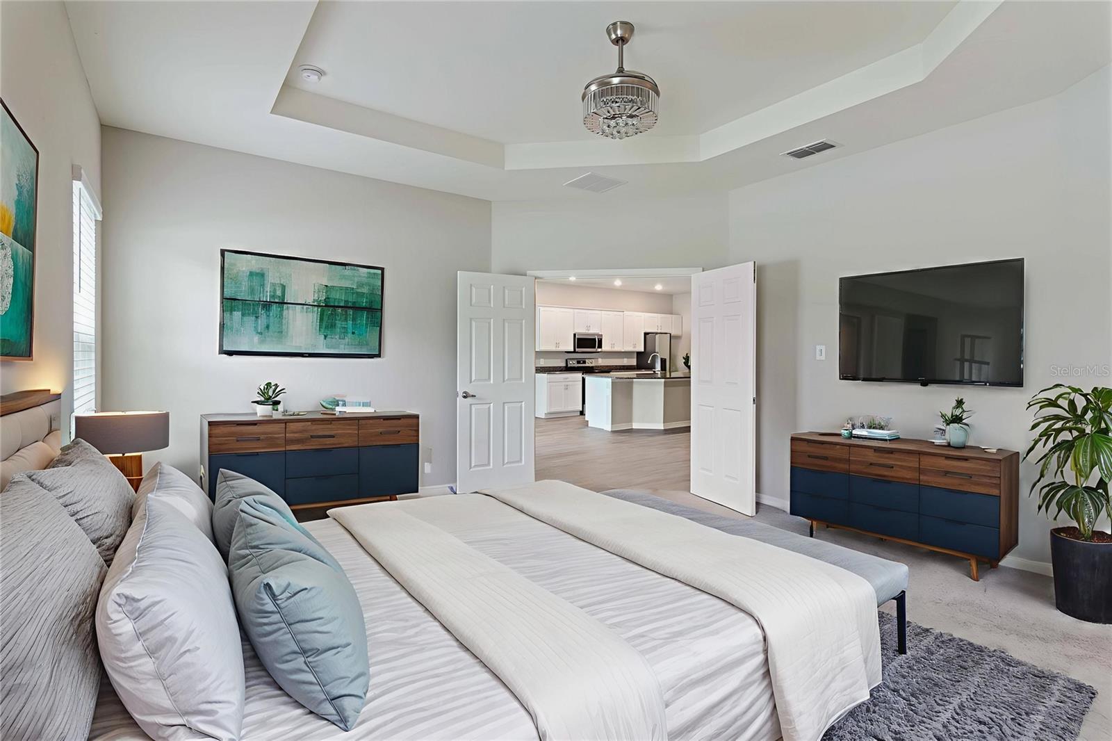 - Ceiling Fans(s), Crown Molding, High Ceilings, Open Floorplan, Smart Home, Solid Surface Counters