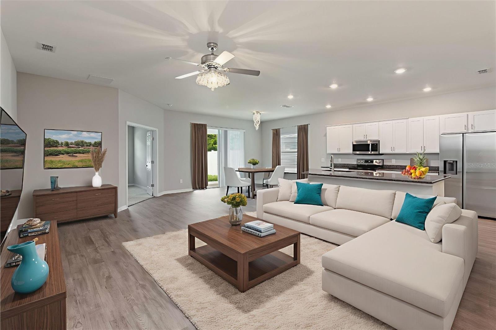 One or more photo(s) has been virtually staged. Stunning Highland Homes move-in ready and available now! Lawn Care INCLUDED with Rent! This 3 year old home offers 2,020 sq. ft. of one-story living space with 4 bedrooms, 2.5 baths, and a 2-car garage. Located in a desirable St. Cloud community, zoned for AMAZING SCHOOLS and just minutes from Lake Nona!! Step inside to an open-concept floor plan designed for modern living. The gourmet kitchen features shaker cabinets, granite countertops, Samsung stainless steel appliances, a walk-in pantry, and a spacious counter-height island overlooking the dining café and gathering room. The owner’s suite is GINORMOUSE, a true retreat with a walk-in closet and en-suite bath complete with dual vanities, a tiled shower, spa tub, and closeted toilet. Bedrooms 3 and 4 enjoy a convenient Jack-and-Jill bath with an enclosed tub and toilet. A separate half bath makes entertaining easy. Stylish finishes include luxury wood vinyl plank flooring in the main living areas, baths, and laundry room, plus stain-resistant carpet in bedrooms. Enjoy Florida living outdoors with your covered lanai and beautifully landscaped yard that will be maintained YEAR ROUND; included WITH Rent! This home stands out for its premium upgrades, professional landscaping service, and unbeatable condition!! Schedule your showing today and make this exceptional Shelby model your next home.