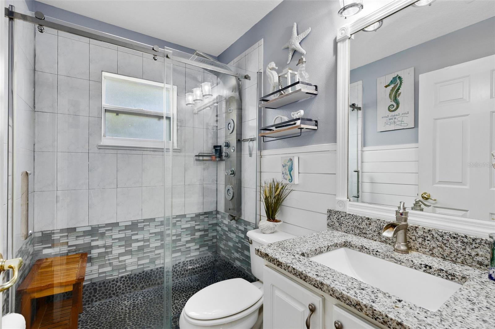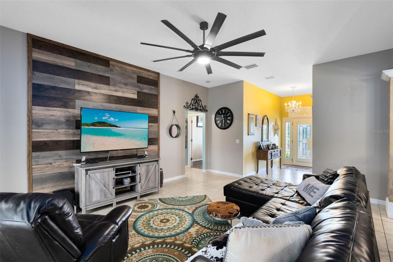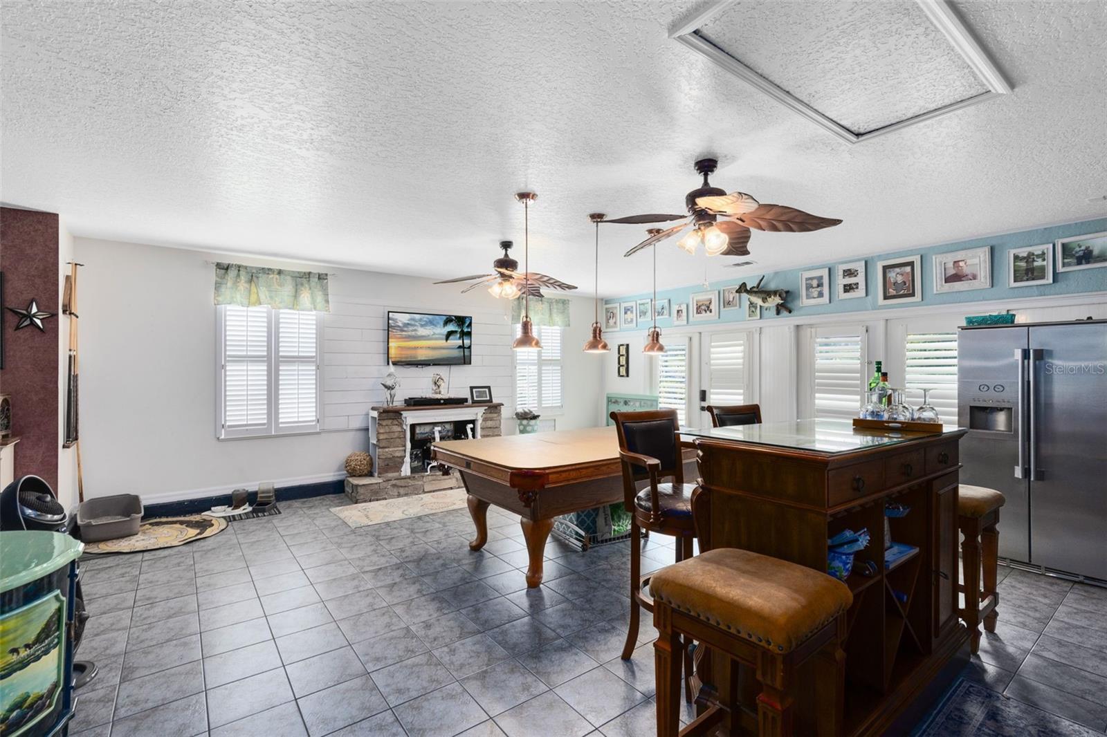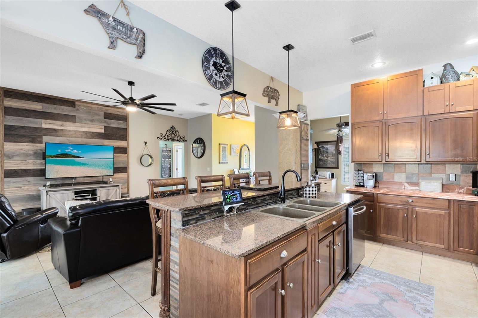 - Built-in Features, Ceiling Fans(s), Dry Bar, High Ceilings, Kitchen/Family Room Combo, Pest Guard System, Split Bedroom, Stone Counters, Thermostat, Walk-In Closet(s), Window Treatments