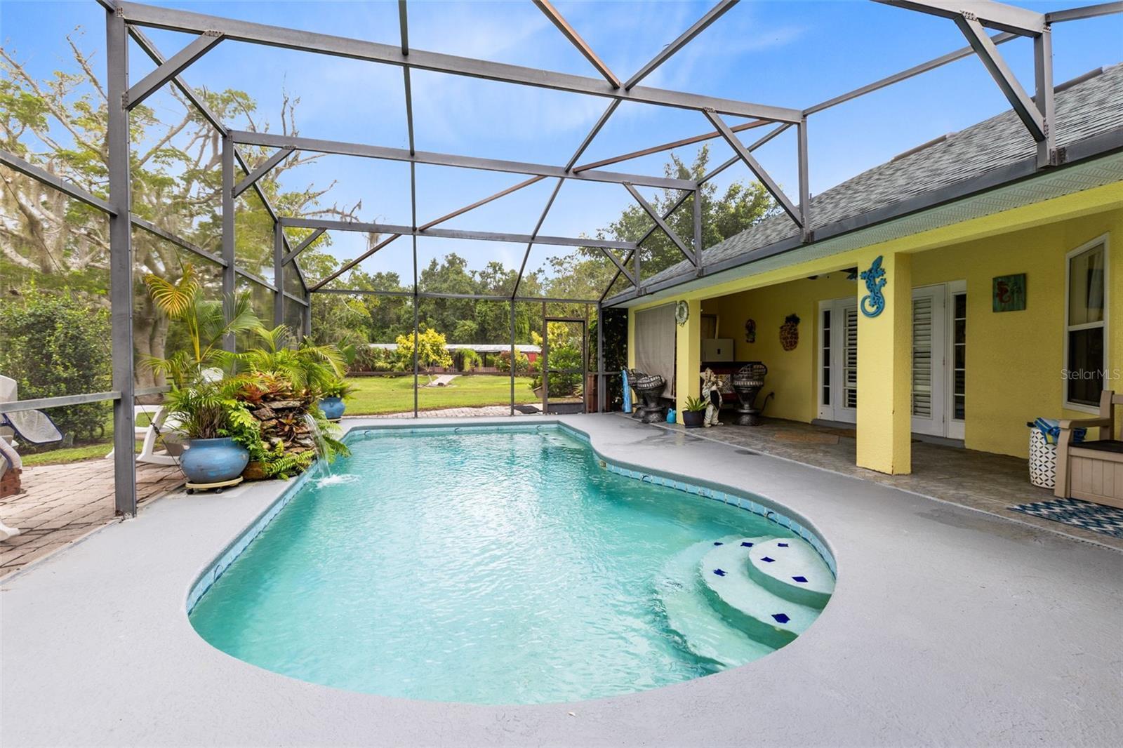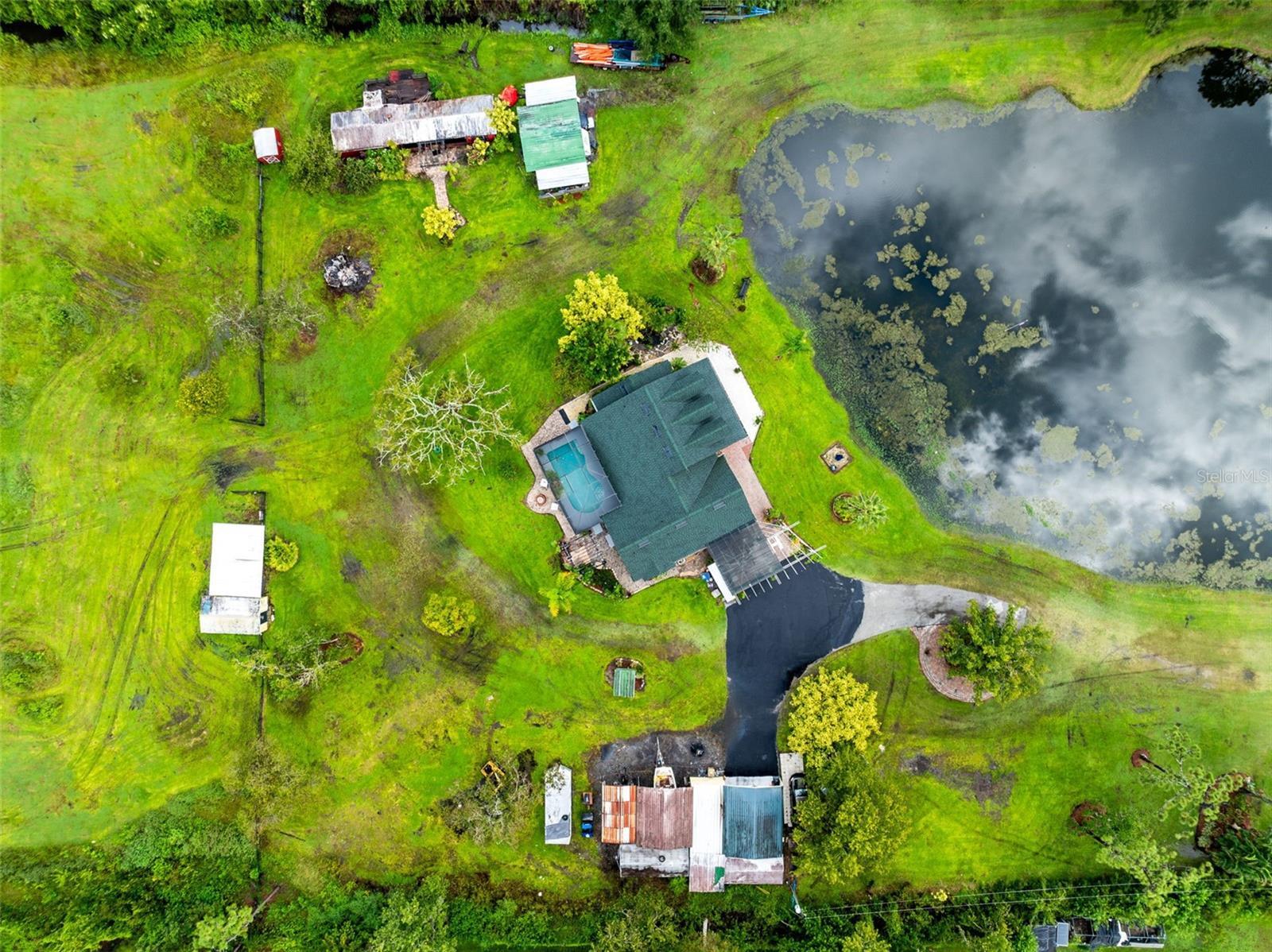 Welcome to your own private piece of Florida- where country living meets convenient location. This custom-built 3 bedroom, 2 bath pool home is perched on a stunning nearly 5 acre homestead with one of the most beautiful spring-fed ponds you've ever seen! Come home from work, park anywhere you like- under the pergola car-port, in one of the pole barns, or along your circular driveway (there's no HOA here!) head out on your paddle-board or grab your fishing reel and start casting. With the fully-stocked over 1 acre pond, you're sure to land a big one! Then, jump in the salt-water pool to refresh after a long, hot day. As you float to the sound of the waterfall, take in views of your lush, green pasture that are equipped for horses or other animals. 2 stalls are complimented by a feed and tack shed, making a great place to raise 4H animals. Also outside, is a koi river that flows through a rock garden surrounded by beautiful plants and flowers. Inside the home you'll find lots of French doors, perfect for entertainment and taking in all the views this property showcases. The family room opens to the pool and patio area complete with outdoor bar and entertainment space. Separate from the family room is an impressive bonus living-area currently used as a game room with dry-bar. The attic above this room can be built-out to add an additional bedroom. Off the living room and foyer is an office/den with built-ins. This home has been well loved and cared for by its original owners, and is ready for a new family to begin their own story here!