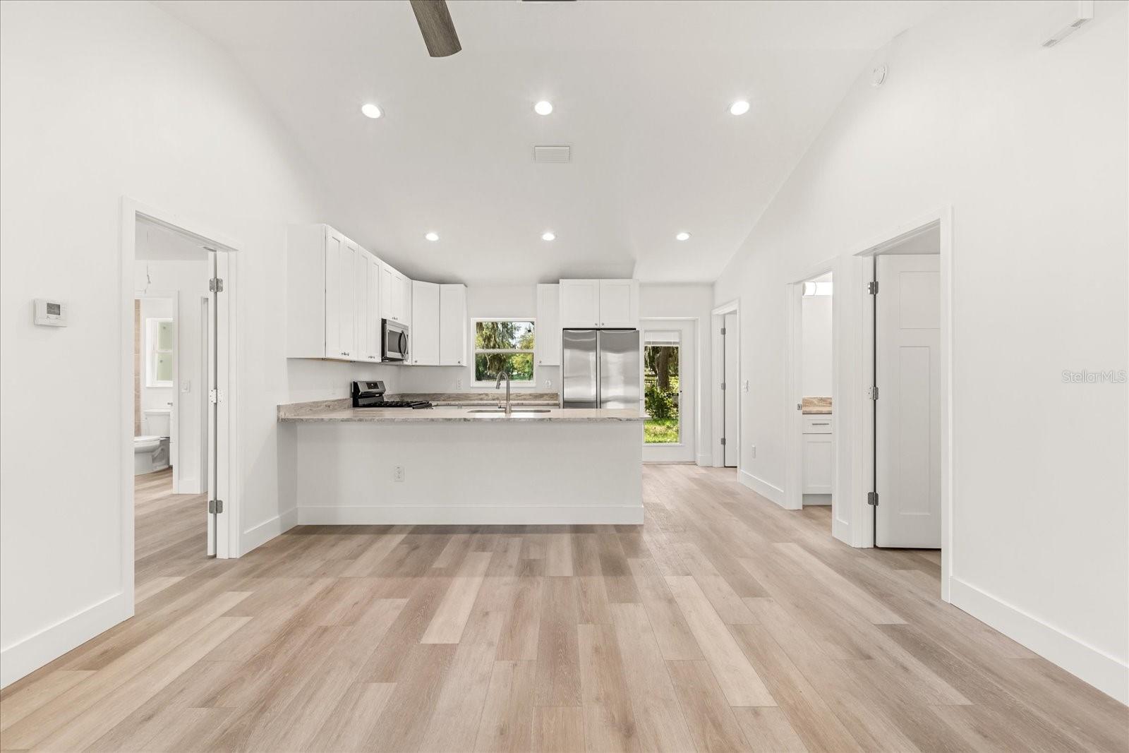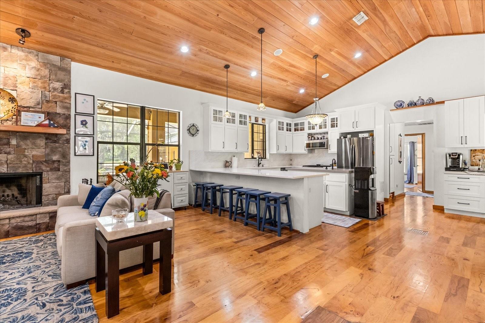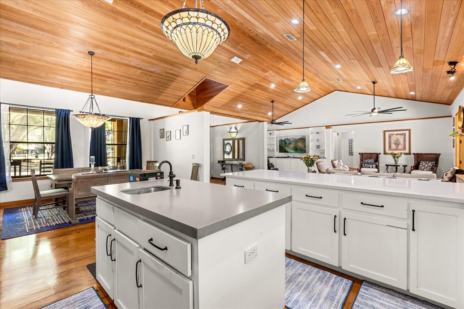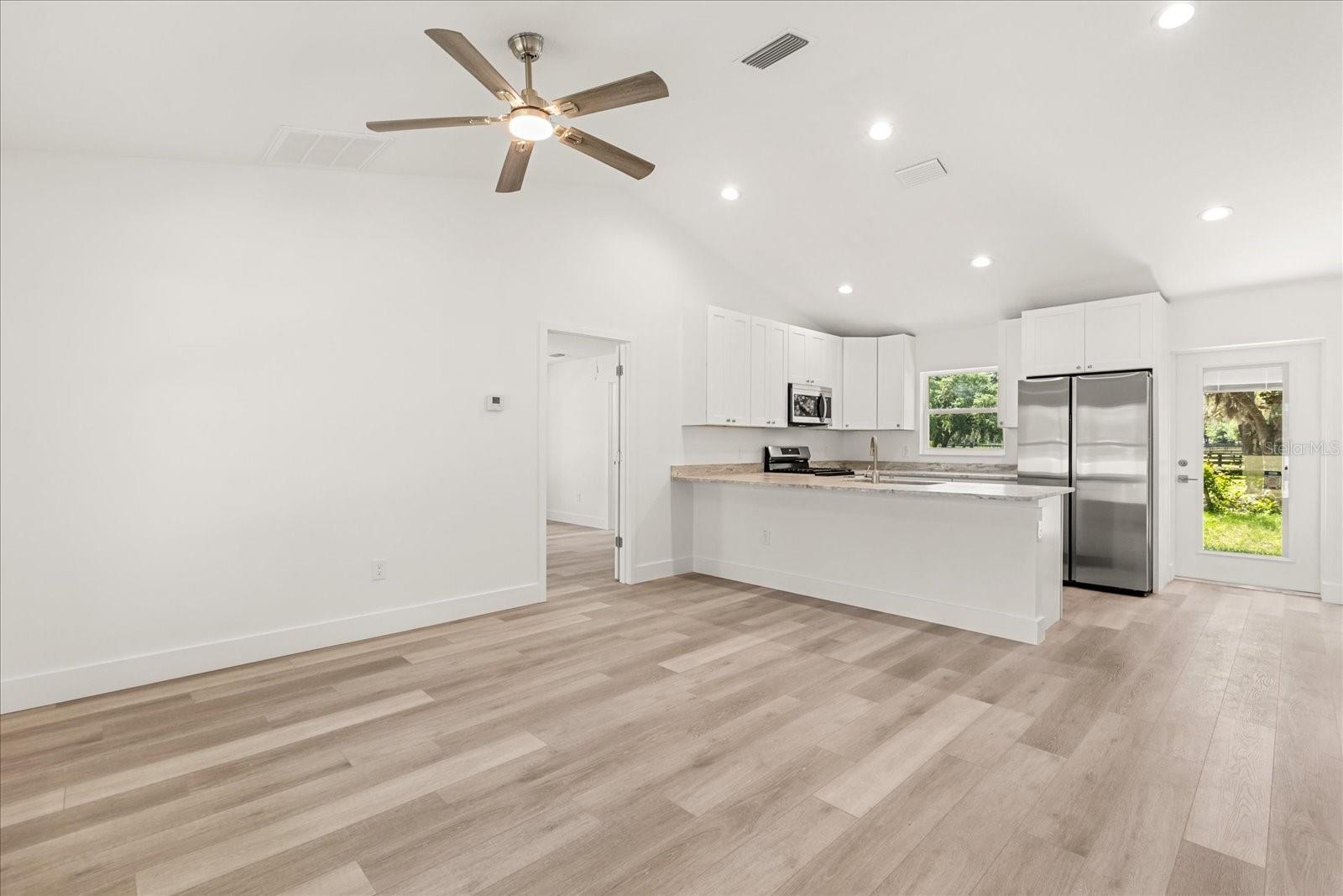 - Ceiling Fans(s), Central Vaccum, Eat-in Kitchen, High Ceilings, Living Room/Dining Room Combo, Open Floorplan, Primary Bedroom Main Floor, Solid Wood Cabinets, Vaulted Ceiling(s), Walk-In Closet(s)