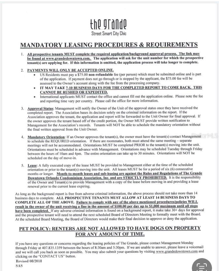 Welcome to The Grande, this one bedroom is spacious, and a new tub and tile was installed within the last year. The recreation facilities can be used by tenants. The pool has bbq area for use, lounge chairs and bathroom with shower. There is guest parking available to use for visitors. You can walk to neighborhood restaurants, Dr. Phillips Center, the library, courthouse, Lake Eola, etc. You have acess to the I-4 and the 408.