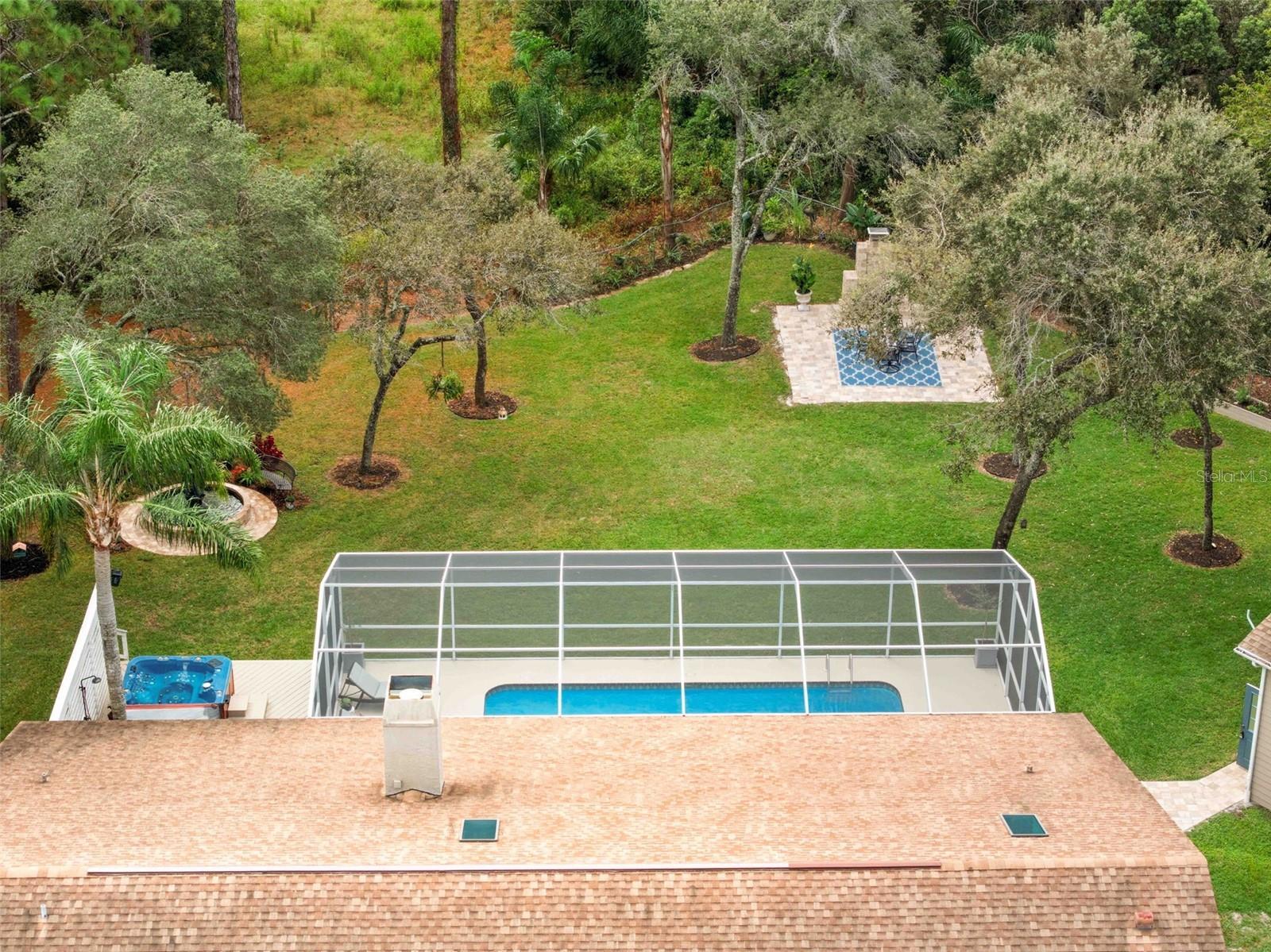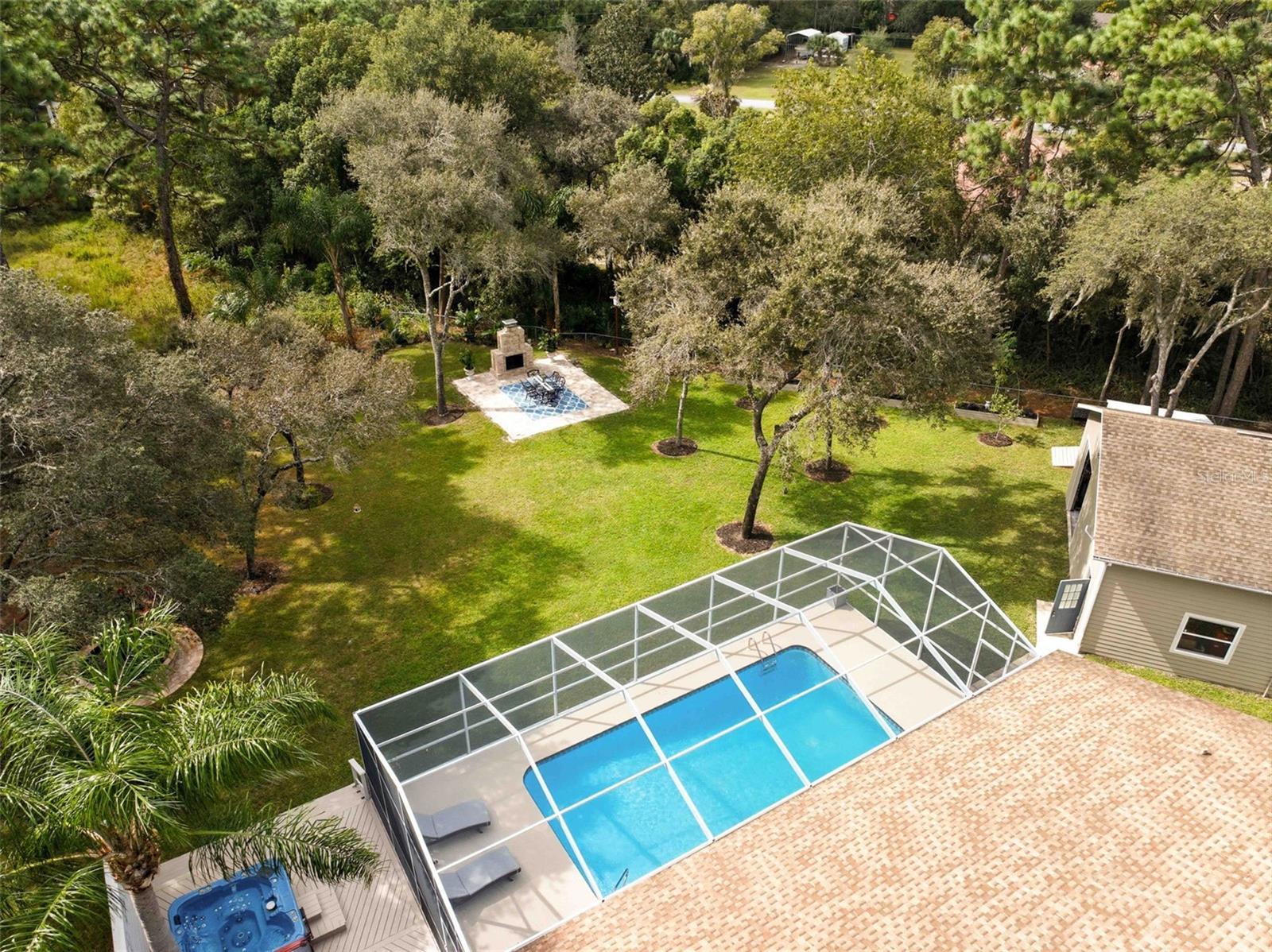 Under contract-accepting backup offers. Family retreat, Car enthusiast and so much more! Escape to your own sprawling oasis on over one acre of meticulously landscaped grounds. This impressive 4-bedroom, 4-bath residence, spanning over 5,000 square feet under the roof, is an entertainer's dream, offering an unparalleled blend of luxury and leisure. From the grand double-door entrance, you are welcomed into a breathtaking open-concept living space with cathedral ceilings and elegant bamboo hardwood floors. The chef's kitchen is a culinary masterpiece, featuring a spacious island with quartz countertops, a butcher block breakfast bar, a wine cooler, and ample pantry storage. Adjacent is the large formal dining room, perfect for hosting elegant dinner parties. The expansive 29' × 22' living room is the ideal cozy retreat, centered around a gas-burning fireplace for those cooler months. For recreation, a massive 36'x 11' game room awaits, complete with an adjacent full bath. Step outside to discover your ultimate backyard haven: a magnificent 1,225 sq. ft. screened-in pool and a separate open-air deck with a luxurious 5-6-person jacuzzi boasting 142 hydrotherapy jets, and outdoor shower. An outdoor kitchen located in the sunroom with grill, refrigerator and sink, just off the primary bedroom and game room, makes al fresco dining effortless. Automotive enthusiasts will be thrilled with the incredible two garages with space for nine cars includes a massive 1,200 sq. ft. detached garage with two roll-up front doors and a 12-foot rear roll-up door, ideal for RV storage and outlet. Detached garage could be an Additional Dwelling Unit or Art studio, podcast studio, unlimited possibilities.The attached garage is 868 sq. ft. Oversized laundry/mud room with secondary refrigerator easy access to connected bathroom. This fully fenced property offers ultimate privacy with a no-build area directly behind it. Additional features include park like setting with mature shade trees, outdoor eating area with brick pavers and brick gas fireplace, fountain, raised-bed gardens, extra storage shed, and garden shed. A sprinkler system fed by private well keeps the lush landscaping vibrant and green.