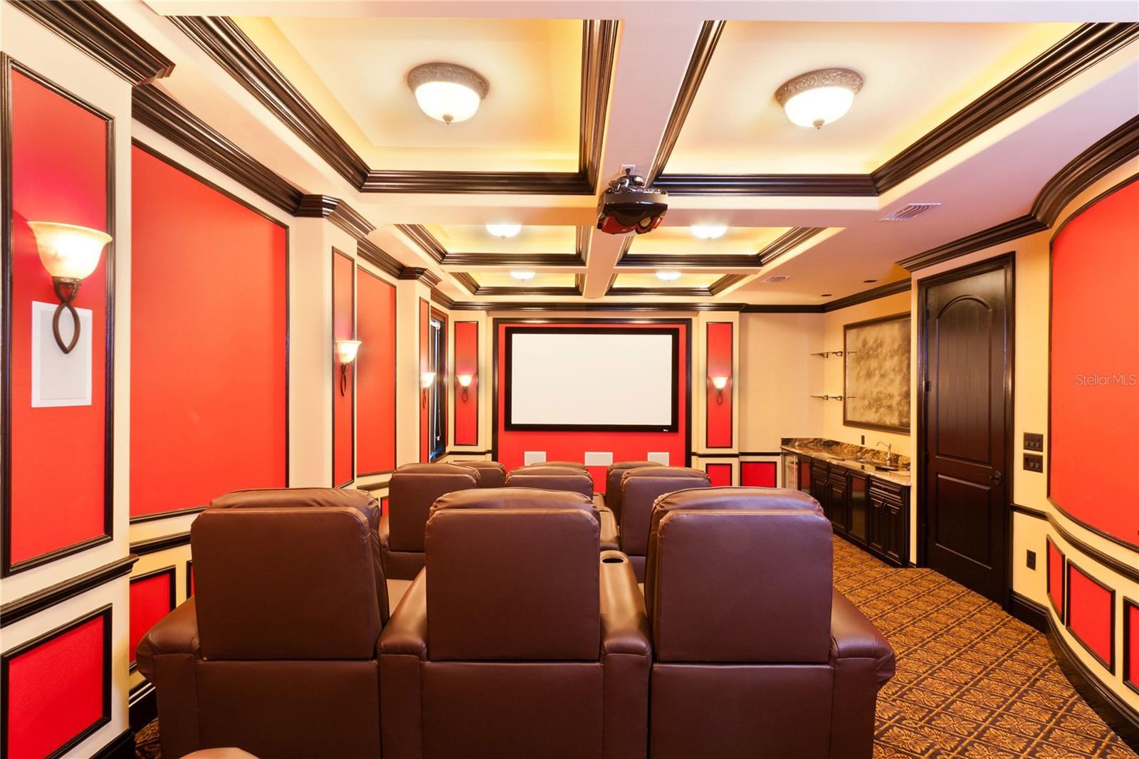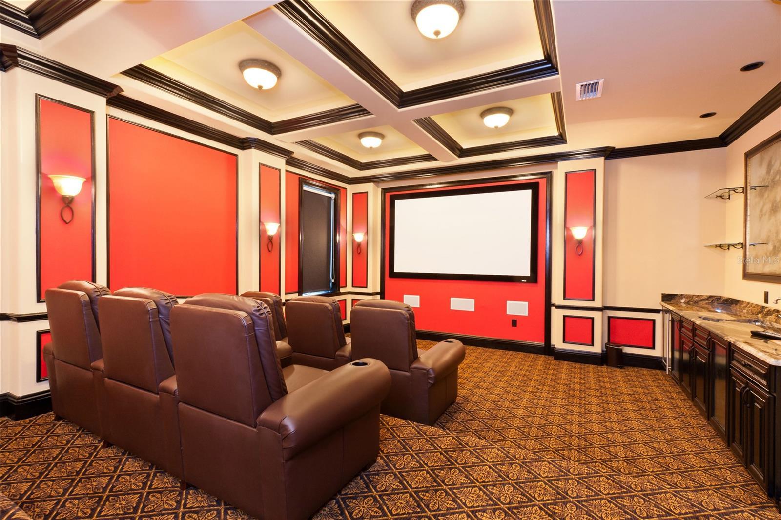 Welcome to 7825 Palmilla Court, a stunning 8-bedroom, 11-bathroom luxury residence offering over 8,000 square feet of living space in Reunion Resort. Designed with elegance and entertainment in mind, this home comfortably sleeps up to 18 guests and delivers a resort experience unlike any other. From the moment you enter the grand hallway, the scale of the home is apparent. Multiple living areas flow seamlessly into the formal dining room and a chef’s kitchen outfitted with top-of-the-line appliances, a breakfast bar, and generous gathering space. Floor-to-ceiling detail continues with luxury furnishings and multiple balconies that frame panoramic golf course views. Each of the 8 bedrooms is a private suite, complete with en-suite bathrooms, walk-in closets, and HDTVs. Among them are two grand master suites, one with its own private lounge, balcony access, and spa-inspired bath with a soaking tub and walk-in shower. Six additional suites, including two with dual double beds, ensure ample accommodations for large families or groups. This residence was built for fun and relaxation. Entertainment options include a 12-seat private cinema with surround sound and wet bar, a games room with pool and poker tables, custom chess table, and HDTV, and a family lounge featuring foosball, gaming consoles, and Bose surround sound. Fitness enthusiasts will enjoy the private gym with cardio and strength equipment, while evenings can be spent gathered in one of the many lounges or outdoor living spaces. Outside, the home transforms into a true resort. A custom-designed pool with spa and water slide anchors the expansive patio, complete with an outdoor kitchen, grill, and covered dining areas. Luxury poolside furniture, a pool bar, and outdoor HDTV create the perfect setting to enjoy Florida days and nights, all overlooking the Jack Nicklaus Signature Golf Course. Automated insect screens on balconies and lanais provide additional comfort while taking in the views. Located just minutes from Walt Disney World, this property combines convenience with world-class amenities. Reunion Resort offers three championship golf courses, a water park with lazy river, multiple pools, tennis and pickleball courts, a full-service spa, and upscale dining. Whether as a primary residence, a second home, or a high-performing vacation rental, 7825 Palmilla Court delivers luxury, lifestyle, and investment opportunity in one extraordinary package.