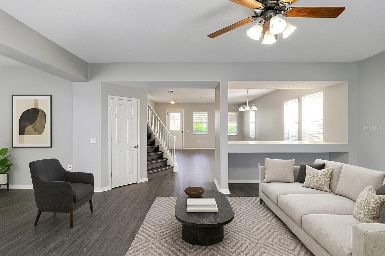 This stunning two-story family home, located in the desirable Sunrise Lakes community of Clermont, offers approximately 2,940 sq. ft. of upgraded living space and is zoned for short-term rentals. This 5-bedroom, 2.5-bath pool home backs onto a scenic pond, providing beautiful water and sunset views. Step inside to a bright and spacious open-concept living room, family room and dining area. Newly renovated kitchen features a central island, brand new cabinets, countertops, and stainless-steel appliances, including a refrigerator, stove, dishwasher, washer, and dryer. The breakfast area offers a walk-out to the pool. The home boasts 5 generously sized bedrooms. The primary bedroom includes a large walk-in closet and a 5-piece ensuite with a separated shower and oval bathtub. Brand new waterproof vinyl flooring throughout, including the stairs, and fresh interior paint for a clean, contemporary feel. All tile areas have been professionally grout-cleaned, ensuring every detail is refreshed. Outside, relax or entertain in the screen-enclosed private pool area, complemented by a newly landscaped front lawn. This residence perfectly blends comfort, style, and convenience, making it an ideal choice for families or investors seeking a modern, move-in-ready home. Additional features include a roof replaced in 2022 and an A/C unit replaced in 2020. Please note that some photos are virtually staged. This excellent location is just off US 27, 8.5 miles from Disney World, and minutes away from Super Walmart, Publix, Lowe's, gas stations, restaurants, a public library, banks, convenient stores, and great public schools. This beautiful home is available to show now—don’t miss the opportunity to make it yours! Please click the virtual tour link for a 3D tour.
