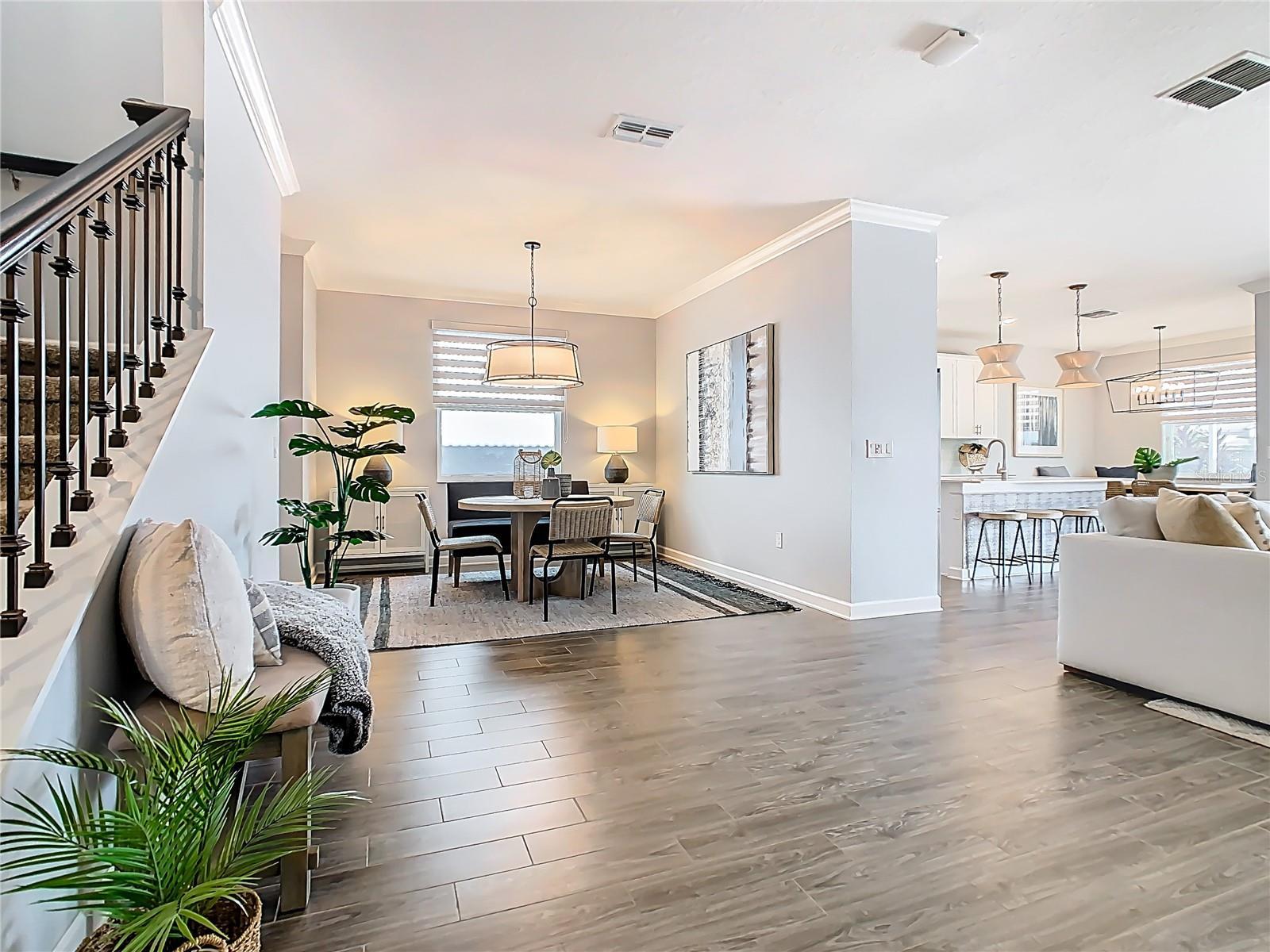 - Built-in Features, Ceiling Fans(s), Crown Molding, Open Floorplan, PrimaryBedroom Upstairs, Solid Surface Counters, Split Bedroom, Walk-In Closet(s)