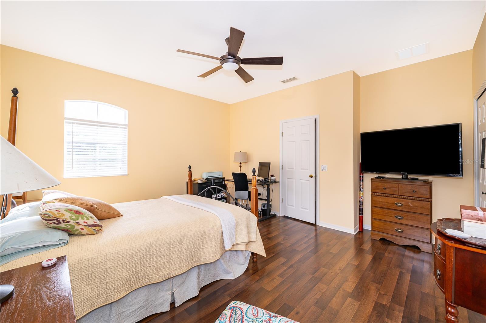 - High Ceilings, Kitchen/Family Room Combo, Primary Bedroom Main Floor, Thermostat, Walk-In Closet(s)