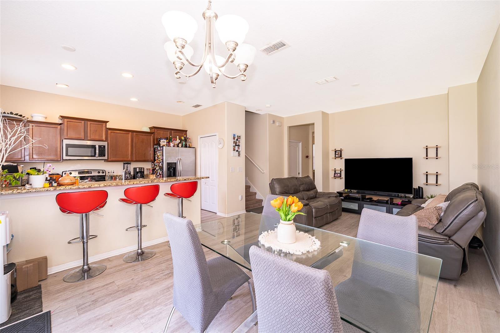 - Cathedral Ceiling(s), High Ceilings, Living Room/Dining Room Combo, Open Floorplan, PrimaryBedroom Upstairs, Solid Surface Counters, Solid Wood Cabinets, Stone Counters, Thermostat