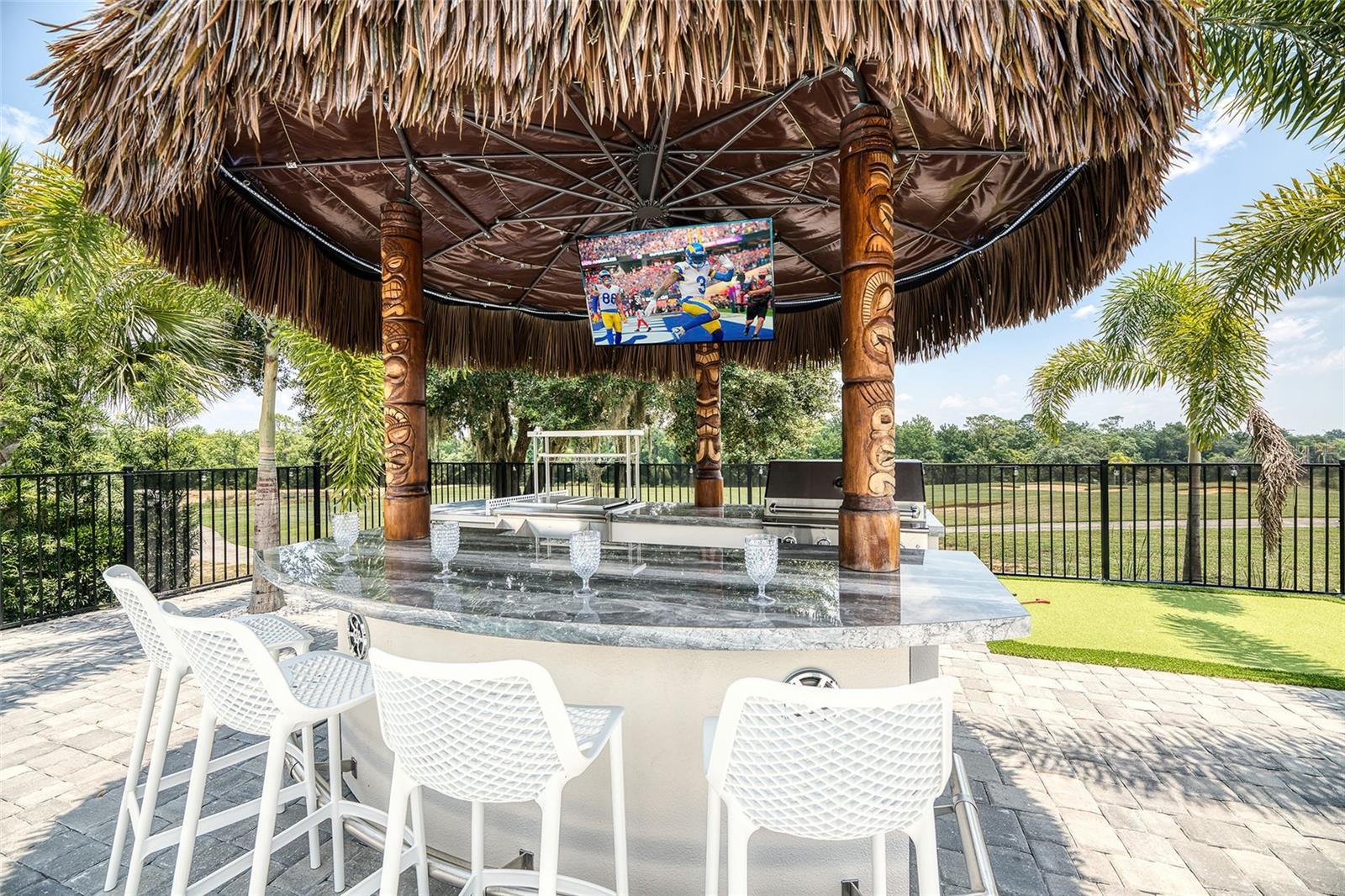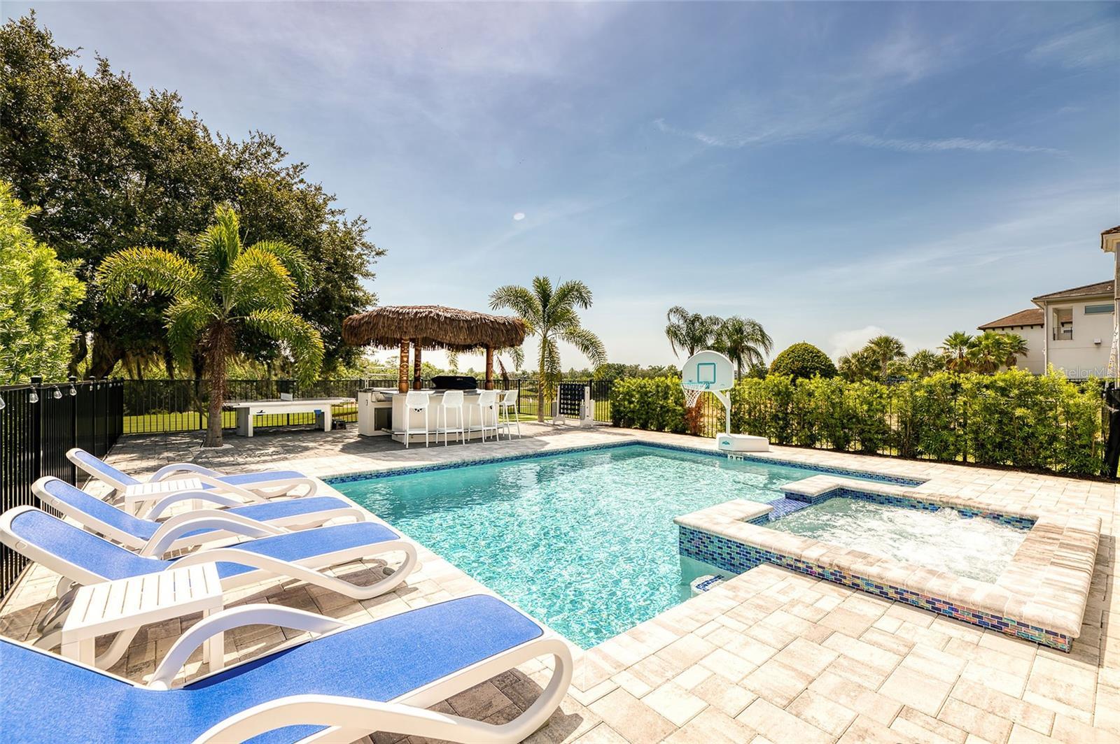 Experience luxury and performance in this stunning Reunion Resort home located on one of the community’s deepest lots with panoramic views of the Jack Nicklaus Golf Course. This property stands out as a high-producing short-term rental with strong financial performance and an active Reunion Resort membership, professionally managed by Magical Vacation Homes. The modern open floor plan features a spacious kitchen with granite countertops, stainless steel appliances, and a large breakfast bar that flows into the dining and living areas, ideal for entertaining or relaxing after a day at the parks. Step outside to your private retreat complete with a heated pool and spa, tiki bar with built-in BBQ grill, wine cooler, and mini-fridge, surrounded by lush landscaping and a personal putting green. Inside, the entertainment continues with a full arcade-style game room featuring basketball, racing, and air hockey, plus an upstairs loft with shuffleboard, poker table, Golden Tee, and Smart TV. Every bedroom is tastefully furnished with modern décor and ensuite baths, making this home perfect for guests and family alike. Reunion Resort is a world-class gated community offering 3 championship golf courses designed by Nicklaus, Palmer, and Watson, a multi-acre water park with lazy river, tennis and pickleball courts, fitness center, restaurants, spa, and 24-hour security. Located minutes from Walt Disney World® and major attractions, this property delivers the perfect balance of luxury, location, and income potential.