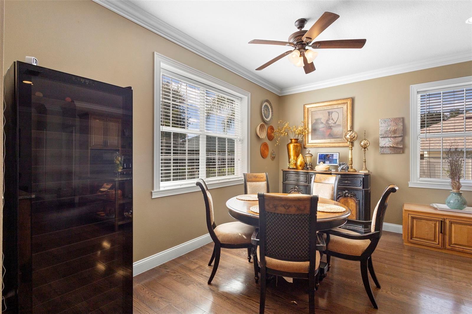 - Built-in Features, Ceiling Fans(s), Central Vaccum, Crown Molding, High Ceilings, Split Bedroom, Stone Counters, Thermostat
