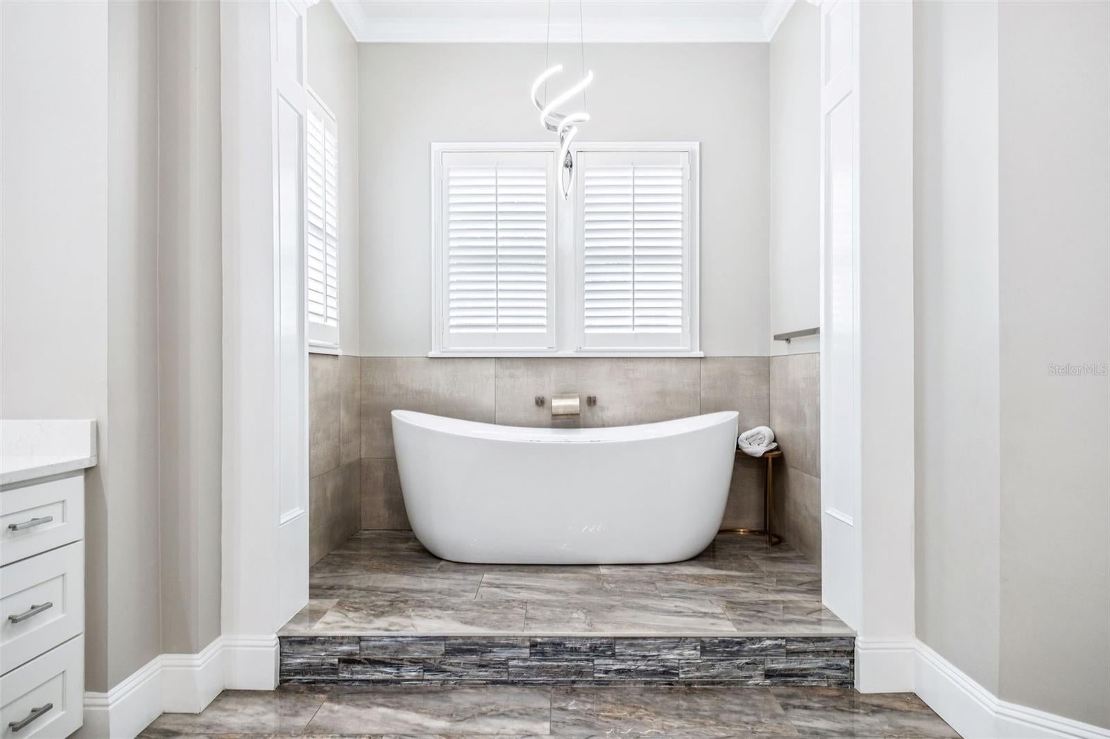 - Ceiling Fans(s), Crown Molding, Eat-in Kitchen, Primary Bedroom Main Floor, Sauna, Walk-In Closet(s), Window Treatments