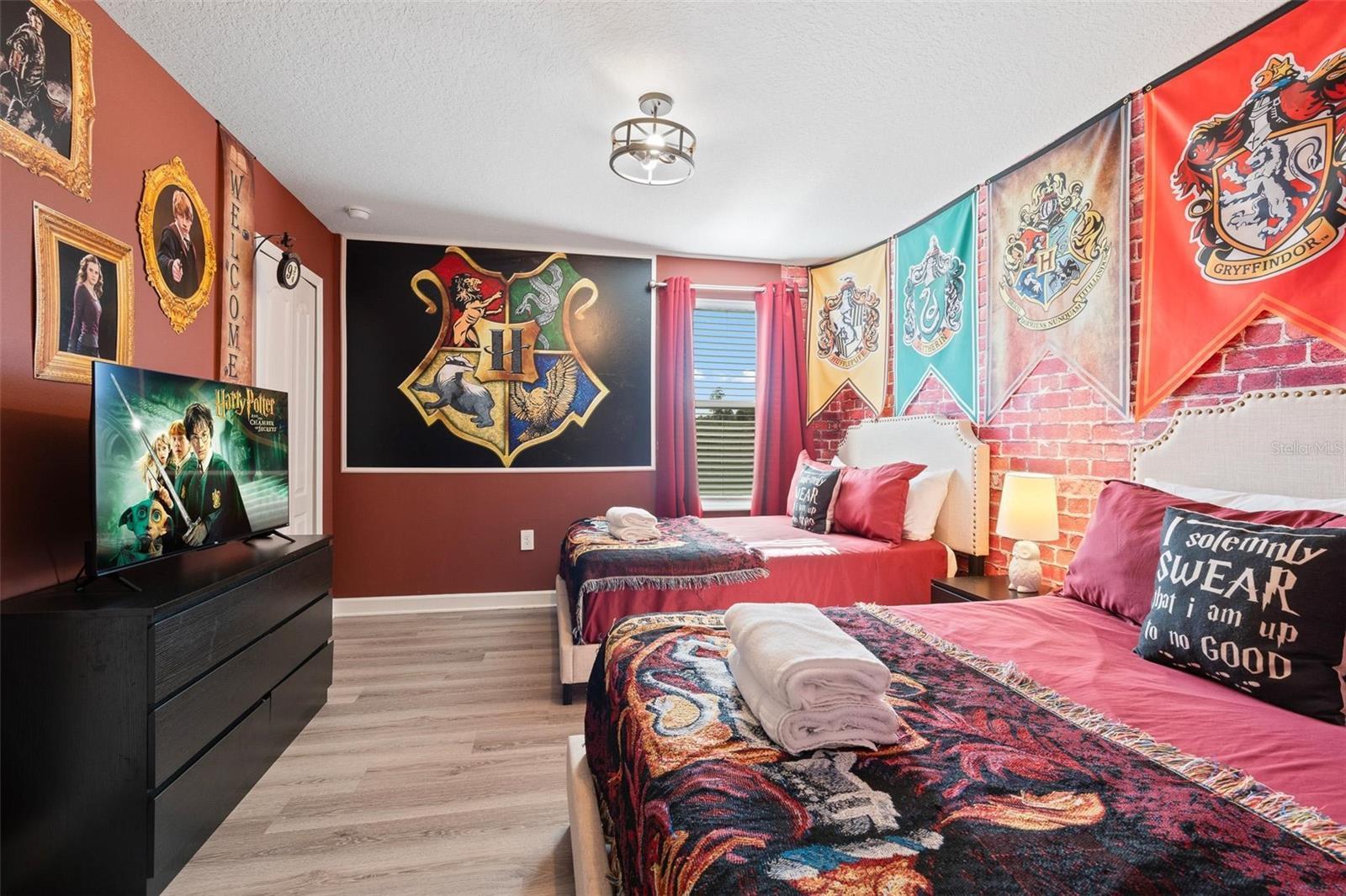 Welcome to a beautifully presented short-term rental home in the highly sought-after Champions Gate Resort, perfectly positioned on a prime corner lot within the community. This stunning, fully furnished 4,000+ sq. ft. property offers exceptional space and comfort, featuring seven bedrooms, a dedicated game room, and a private movie room designed for unforgettable guest experiences. Step inside to discover professionally styled interiors that elevate every stay. The layout is ideal for hosting large families and groups, offering multiple gathering spaces and generous sleeping accommodations. Outside, guests can enjoy a private, screened-in pool and spa with no rear neighbors, providing both relaxation and privacy. Located in a gated community with 24/7 security, owners and guests have full access to the world-class Oasis Clubhouse and Waterpark, complete with a lazy river, slides, splash pad, cabanas, Tiki Bar, fitness center, private theater, and seven tennis courts. Whether you’re looking for a spacious vacation retreat or a beautifully maintained property in one of Orlando’s premier resort communities, this home offers an outstanding opportunity in Champions Gate.