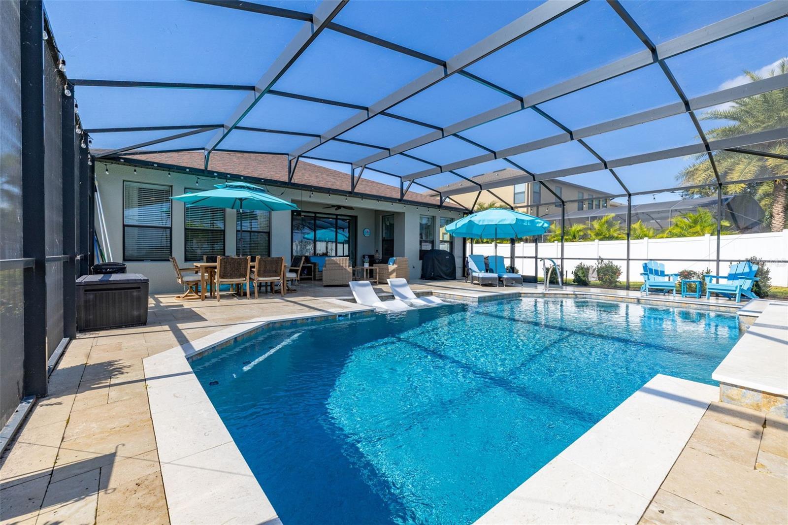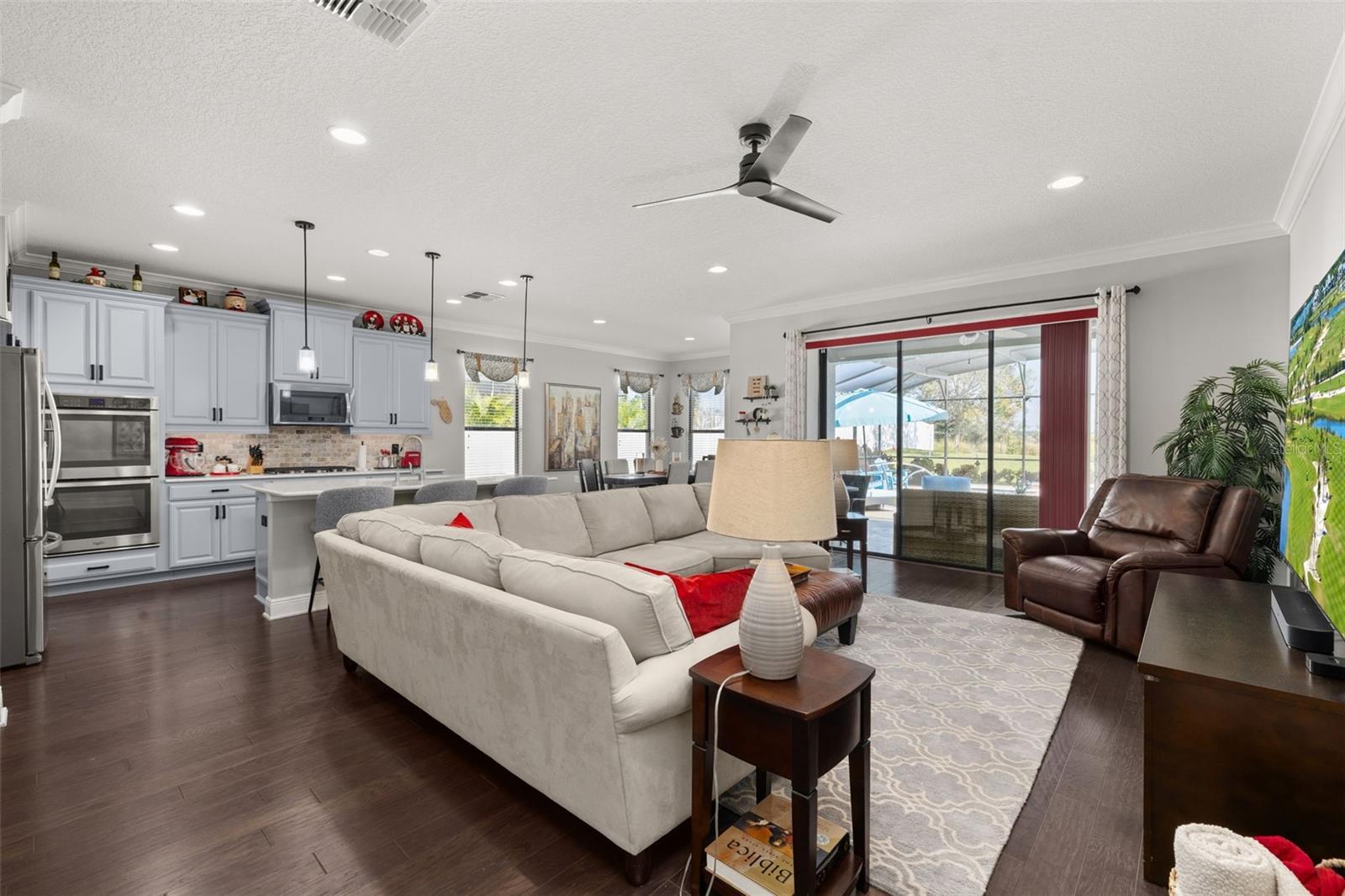 Under contract-accepting backup offers. Welcome to this beautiful 3-bedroom, 2-bathroom pool home with a 4th flex space that can be used as an office or bedroom in the highly desired gated community of Hunter’s Run in Clermont, FL. Featured improvements of added insulation blown into the block walls enhances energy efficiency, hardwood flooring runs through most of the home with bathrooms and laundry room featuring tile for a clean, modern, and low-maintenance living experience and the Hot Water Heater was replaced 2023. The kitchen shines with its freshly resurfaced cabinets and brand-new backsplash completed in 2025, paired with crisp new exterior paint that elevates the home’s curb appeal. A spacious 3-car garage provides ample storage and flexibility for vehicles, hobbies, or workspace. The outdoor oasis is truly the highlight of this property. Enjoy year-round relaxation in the heated pool—only two years old—featuring a sun shelf perfect for lounging. The pool and screened lanai were installed just two years ago, creating a seamless indoor-outdoor lifestyle. The large, private backyard is a rare find with no homes behind and natural elements as far as the eye can see, offering plenty of room to unwind among mature landscaping and even your own mango tree. With its thoughtful upgrades, prime location, and inviting outdoor living spaces, this home is the perfect blend of comfort, efficiency, and Florida charm. The outdoor oasis is truly the highlight of this property. Enjoy year-round relaxation in the heated saline pool—only two years old—featuring a sun shelf perfect for lounging. The pool and screened lanai were installed just two years ago, creating a seamless indoor-outdoor lifestyle. The large, private backyard is a rare find, offering plenty of room to unwind among mature landscaping and even your own mango trees. With its thoughtful upgrades, prime location, and inviting outdoor living spaces, this home is the perfect blend of comfort, efficiency, and Florida charm.