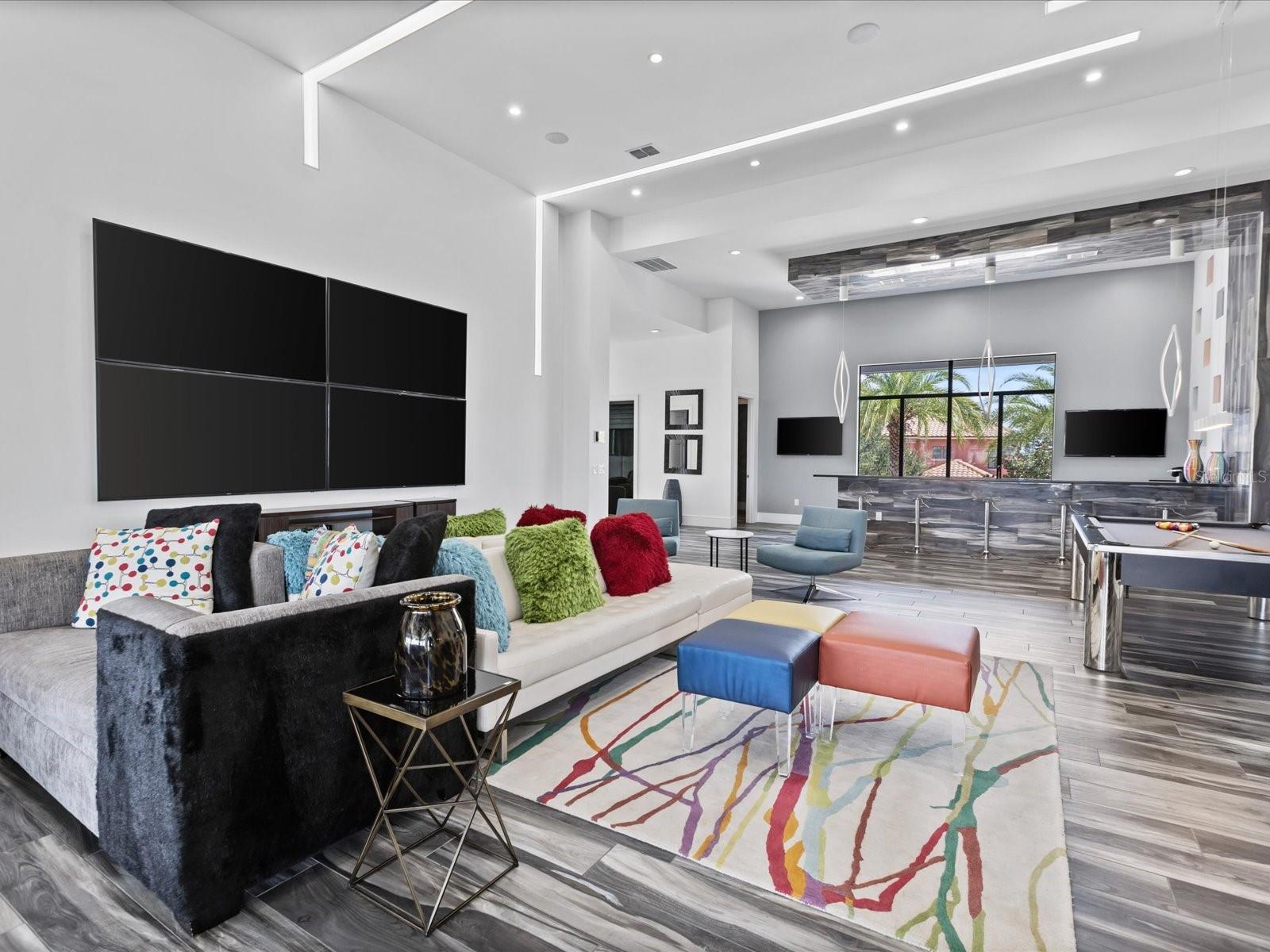 Priced to sell. Prepare to embark on a journey where luxury knows no bounds. This extraordinary 13,000 square feet custom property boasts 12 bedrooms, each accompanied by its own ensuite, as well as additional half baths. Upon entering, you'll discover a realm of unparalleled design and imagination. Step into luxurious master suites that redefine opulence, ensuring absolute comfort and privacy for all.The children's bunk rooms have spectacular theming that makes every night an adventure. Who wouldn't want to fly their own spaceship, or sale in a pirate ship, or sleep in a fairy castle? The heart of this masterpiece reveals itself in the vast open living, dining, and kitchen area, all meticulously designed to offer beautiful views over the manicured golf course and the resort-style pool. Entertain with grace and style in your full summer kitchen and the enchanting outdoor dining and living area, destined to be the backdrop for countless memories. Venture upstairs to find an open loft that stretches as far as the imagination can go. Here, a pool table beckons friendly competition, a full bar sets the stage for unforgettable evenings, and a secret door reveals the hidden electronic games room—a playground for all ages. As the sun sets, retreat to the expansive upstairs balcony, a serene escape from the day's activities. It's the ideal place to find shade, sip cocktails, and witness the sky paint a masterpiece as it transforms into twilight. Indulge in cinematic wonders in your very own home theater and maintain your wellness regimen in the well-equipped gym. Every corner of this estate is a testament to luxury living at its finest. Set within the prestigious Reunion Resort, only 7 miles from the enchantment of Disney, this property not only offers unrivaled living but a lifestyle that dreams are made of. Reunion Resort boasts 3 championship golf courses, a multi-million-dollar water park with a lazy river, tennis courts, miniature golf, world-class dining options, and even a Starbucks. The Reunion Membership is transferable, ensuring that the amenities of this remarkable resort are at your fingertips. Additionally, this property has a fabulous rental history, offering a lucrative investment for those inclined. Don't let this opportunity pass you by. Contact me today for a private viewing of this exceptional property and experience a world where luxury and imagination intertwine.