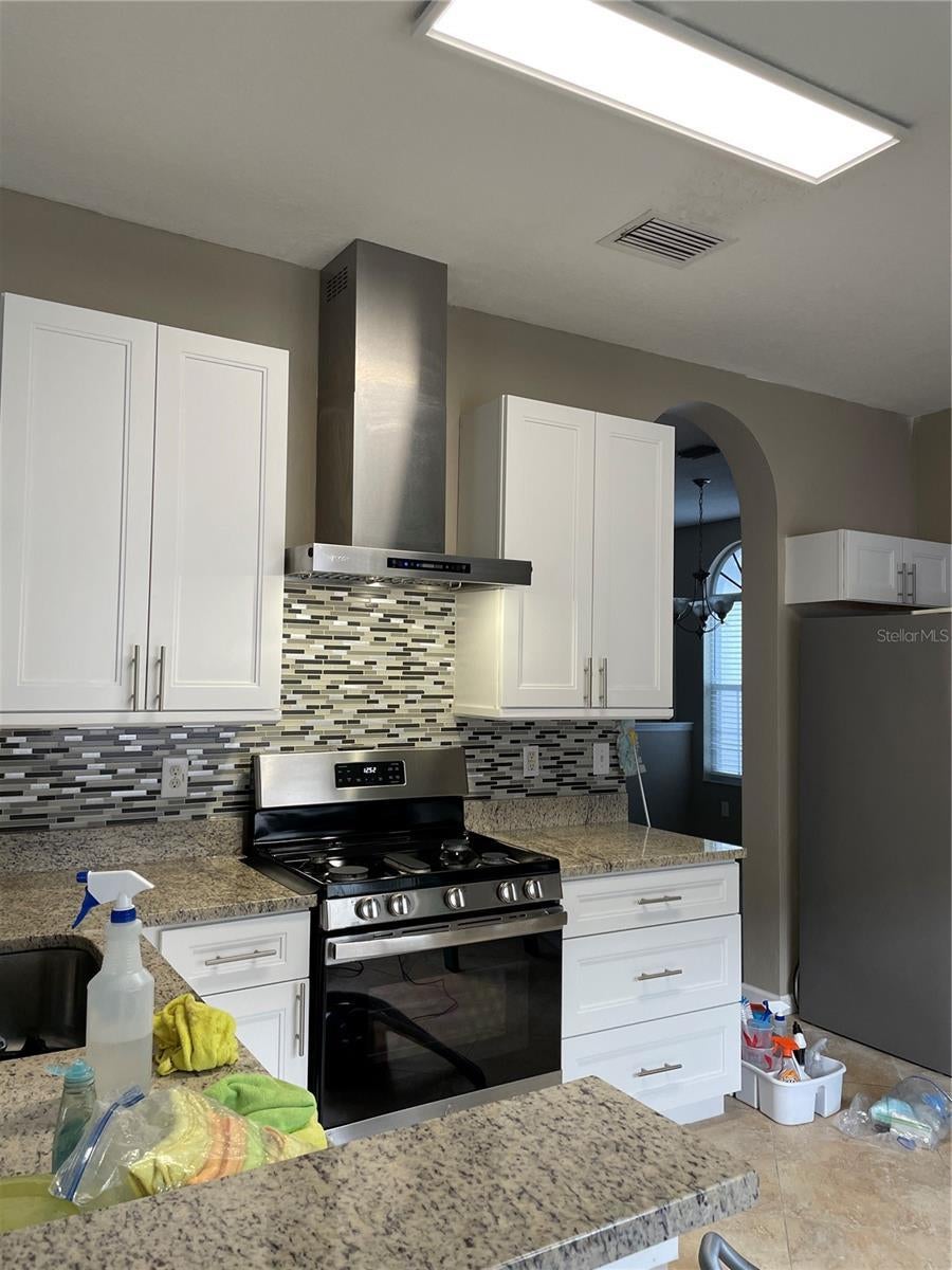UPGRADED & UPDATED 3 bed/two Baths home with large FENCED BACKYARD! NEWER kitchen cabinets have an upscale design and soft close feature. Beautiful GRANITE COUNTERTOPS in Kitchen and both Baths. Kitchen features all STAINLESS STEEL APPLIANCES including Dishwasher, Range, Microwave, side by side Refrigerator and deep S/S sink with disposal. A closet pantry and room for a table! TILE FLOORS throughout kitchen & baths. New laminate flooring in whole house. Estra large PRIMARY SUITE features a larger WALK-IN closet, EN-SUITE BATH with DUAL VANITIES, A walk-in shower, GARDEN TUB and linen closet. COVERED PLAYGROUNDS, SWINGS, SAND VOLLEYBALL, BASKETBALL & miles of sidewalks. It is conveniently located at the Wesley Chapel/Land O Lakes border off SR54 just minutes from 1-75. The Grove shops, Wiregrass Mall and Tampa Premium Outlets + lots of restaurants nearby. Tenant responsible for utilities, lawncare and renters insurance. Landord will replace the air filter on the mainentance day every 3 months. HOA approval needed.