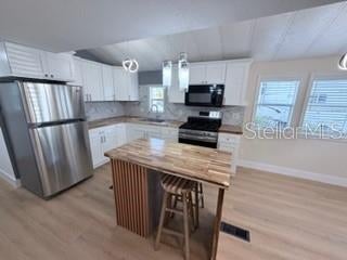 2 bedroom and 1 bathroom mobile home recently renovated and rehabbed home in the gated Shelter Cove community in St. Cloud. Home has been improved with additional square footage added to approximately 500 sq ft. of living space. NEW AC unit, NEW water heater, and renovations completed throughout. The home offers an open kitchen, dining, and living room space with an eat in island. Kitchen features a gas stove, refrigerator, built in microwave. Electric washer and Gas dryer are present for convenience of tenants. Water/Sewer and Trash pickup are included with the rent. Located in a charming lakefront gated community with clubhouse, community pool, and fitness center situated on Lake Center, which is apart of the Alligator Chain of Lakes. Nearby to shops and restaurants and a short drive to the coast and several beaches. Small pets are welcome with owner approval and non-refundable pet fee per pet. Following homeowner approval, tenants are required to apply and be approved by the Shelter Cove HOA at $45.00 per person. Approval can take up to 30 days. HOA Fees, rules and regulations, home square footage, and lot sizes should be independently verified. Tenants are solely responsible for the cost of obtaining gate passes, amenity passes, and mailbox keys.
