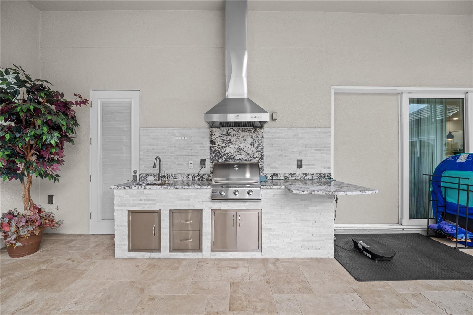 - Courtyard, Lighting, Outdoor Kitchen, Rain Gutters, Sidewalk, Sliding Doors