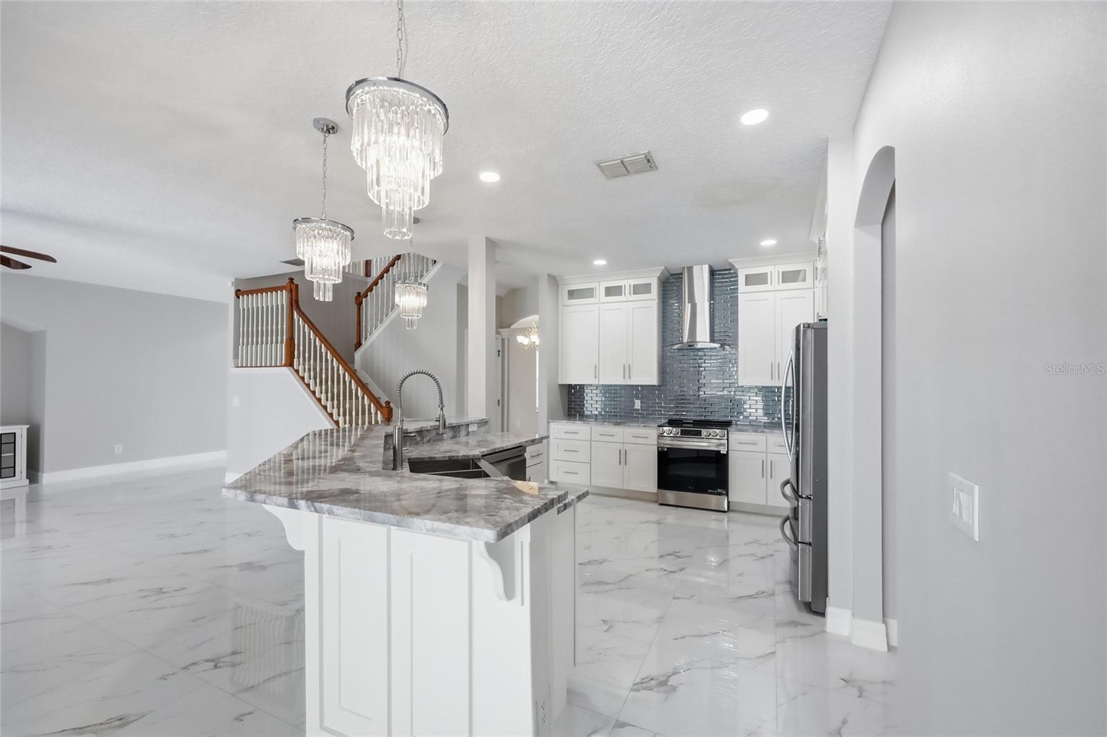 One or more photo(s) has been virtually staged. Live Grande in this beautiful 6-bedroom, 3.5-bath home overlooking the 7th fairway in the highly sought-after Legends Country Club, one of Clermont’s most desirable guard-gated communities. This residence showcases soaring ceilings, elegant arches, a cozy loft, and spacious living areas filled with character. Enjoy the Florida lifestyle with your private pool featuring waterfall and decorative lights, plus a huge, covered porch and screened enclosure perfect for entertaining. Recent upgrades include a new roof (2017), AC upgrade (2025), a full kitchen renovation (2025) with natural stone countertops, designer lighting, and new appliances, as well as a refreshed pool and renovated downstairs bedrooms and bath. The HOA includes Internet and Summit Broadband TV, and the Legends community offers resort-style amenities: pool, spa, sauna, fitness center, tennis, pickleball, basketball, playground, clubhouse, and championship golf. Conveniently located near shopping, dining, hospitals, Lake Sumter State College, and Florida’s Turnpike, this home combines timeless charm with modern updates — truly move-in ready and exceptional.