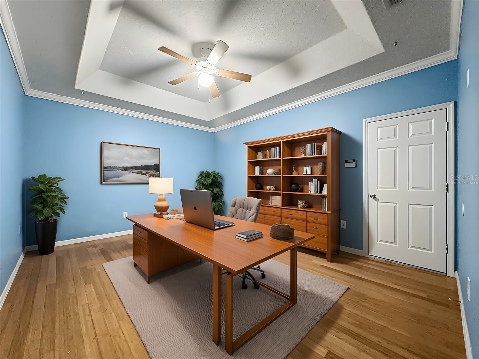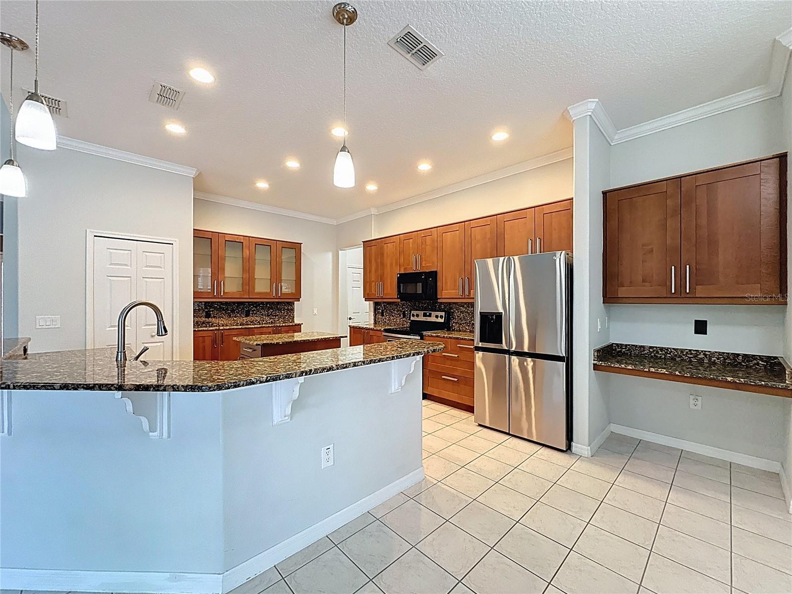 - Ceiling Fans(s), Crown Molding, Eat-in Kitchen, High Ceilings, Open Floorplan, Solid Surface Counters, Split Bedroom, Stone Counters, Thermostat, Tray Ceiling(s), Walk-In Closet(s), Window Treatments