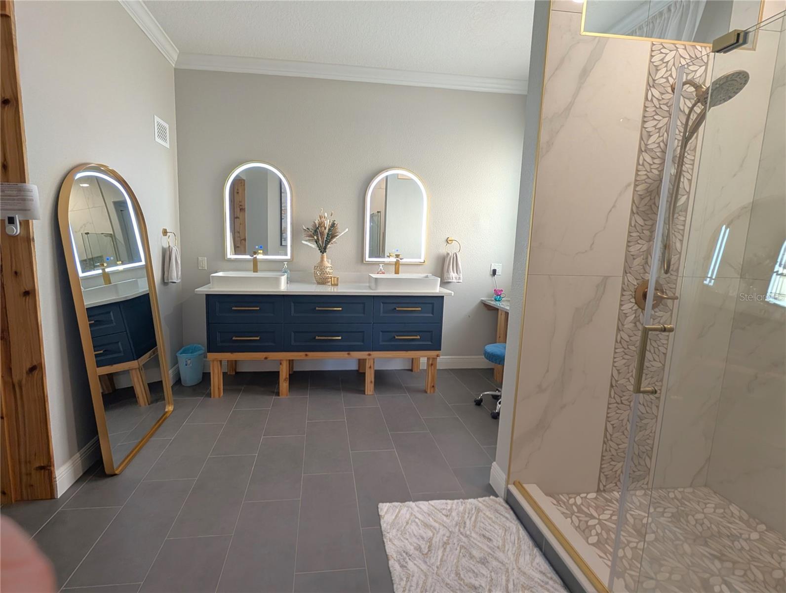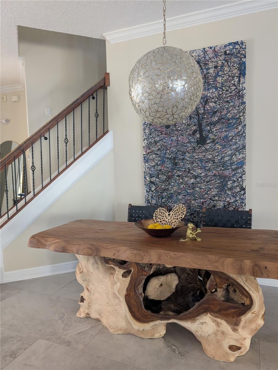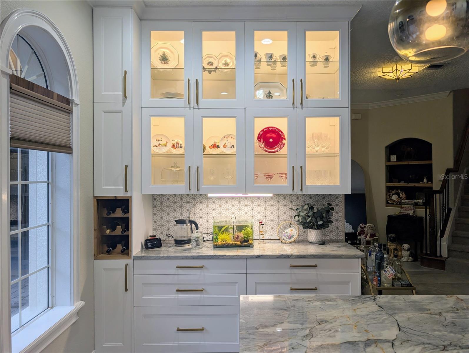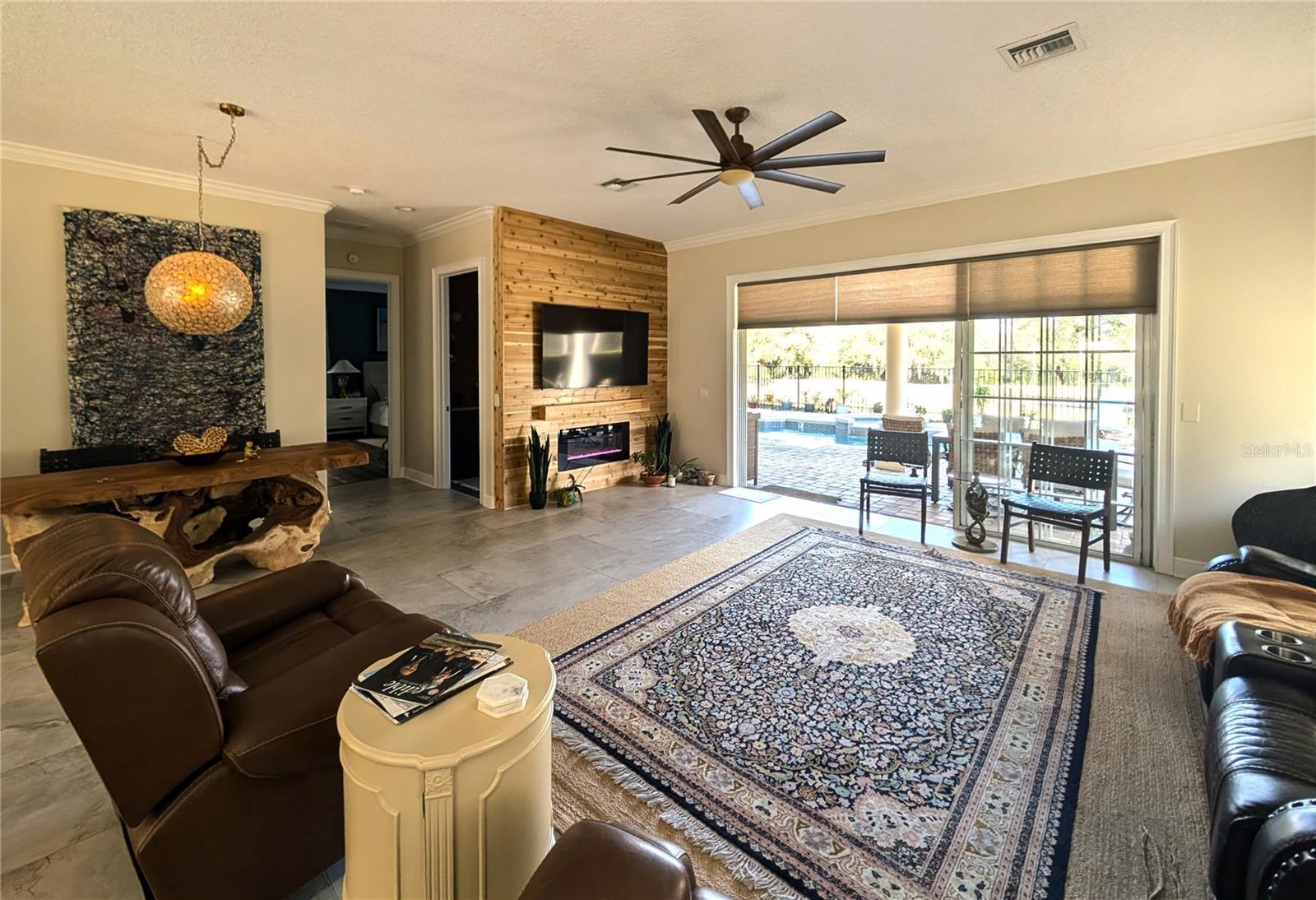 - Built-in Features, Ceiling Fans(s), Crown Molding, Eat-in Kitchen, High Ceilings, Kitchen/Family Room Combo, Living Room/Dining Room Combo, Open Floorplan, Primary Bedroom Main Floor, PrimaryBedroom Upstairs, Sauna, Stone Counters, Thermostat, Walk-In Closet(s), Wet Bar, Window Treatments