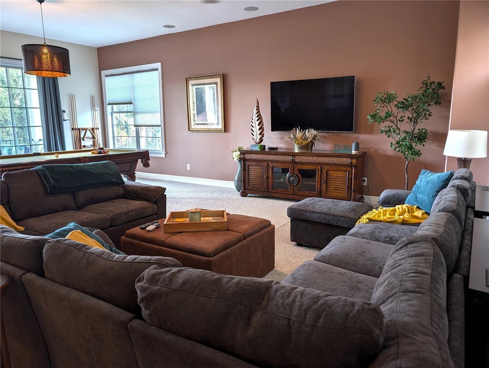 ACTIVE GOLF MEMBERSHIP* Motivated Seller* Fully Furnished & Move-In Ready Step into a chef’s dream kitchen featuring a premium Thor appliance package and an impressive 14-foot luxury quartzite island. The open-concept great room flows seamlessly to the covered patio, pool, and breathtaking views of the 4th hole of the Watson Golf Course. With no rear neighbors—only tranquil conservation—you’ll enjoy unmatched privacy and serenity. The spacious downstairs owner’s retreat offers a large walk-in closet, separate water closet, new cedar sauna, double vanities, make-up table, and an oversized shower. A first-floor guest bath provides convenient pool access, while the laundry room includes a deep sink. Up the newly carpeted(2025) stairs, the entertainment loft is designed for fun and relaxation with a newly felted pool table, wet bar, sectional sofa with pull-outs creating 2 twin beds, and large sliders opening to a roomy covered deck with unobstructed fairway views. A second owner’s suite upstairs features balcony access, a luxury ensuite with custom built-ins, and a walk-in closet. Two additional bedrooms include one with a walk-in closet and another with a Star Wars theme. The upstairs hall adds a linen closet and a full bath with new fixtures. The garage is painted in STAR WARS theme, includes large storage closet. UPGRADES in 2022 include: large format tile throughout great room and laundry, all appliances (washer, dryer, Thor 4 door refrigerator, Thor Dishwasher, Thor drawer microwave, Thor 48 inch hood, Thor 48 inch double oven with 6 gas burners and a griddle, outdoor kitchen, tankless gas water heater, and LVP in bedrooms. 2025 UPGRADES: new paint in and out, gutters, roof, cedar sauna, carpet, bathroom tiles. This exceptional WIDE LOT home is on a quiet dead end street with many year-round neighbors and comes with a membership to the Reunion club - three signature golf courses, a five-acre water park, tennis and pickleball, fitness center, restaurants and more—schedule your private showing today! JUST REDUCED ----