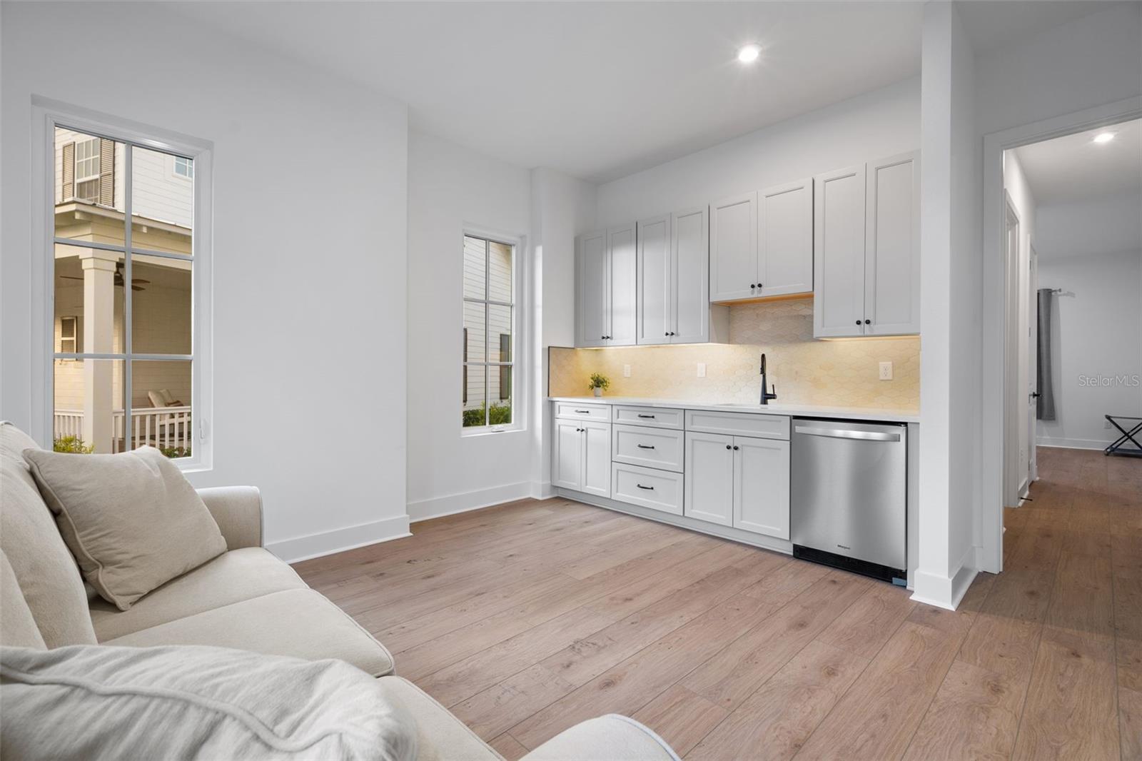 Rare opportunity to own one of only three Shackleford Mediterranean homes built in Island Village—Celebration’s newest and most desirable neighborhood. This exceptional property is in virtually brand-new condition, purchased only months ago and barely lived in, offering the benefits of new construction without the wait. Located on a unique homesite, this home blends luxury, comfort, and functionality. The open kitchen, breakfast nook, and great room with high-end finishes create an inviting gathering space, complemented by a separate dining room for formal occasions. Ideal for multi-generational living, the first floor includes a private suite with living room, wet bar, full bath with walk-in shower, and dedicated bedroom. Upstairs, the owner’s suite features a spa-like bath with free-standing tub, large walk-in shower, and spacious closet. Three additional bedrooms provide generous accommodations for family or guests. A large covered lanai offers outdoor enjoyment year-round. Above the 3-car garage, a private 2-bedroom apartment adds exceptional versatility—perfect for guests, extended family, or additional income. Enjoy Island Village’s brand-new parks, trails, recreation areas, and resort-style pools. A rare chance to live in a new home and new neighborhood within Celebration. Schedule your private tour today! Seller Disclosure – Non-Occupancy. Seller has never occupied or rented the property. Purchased directly from the builder in May 2025. Property may still be under a one-year limited builder warranty until approximately May 2026. Seller has limited personal knowledge. Buyer to verify warranty coverage and transferability.