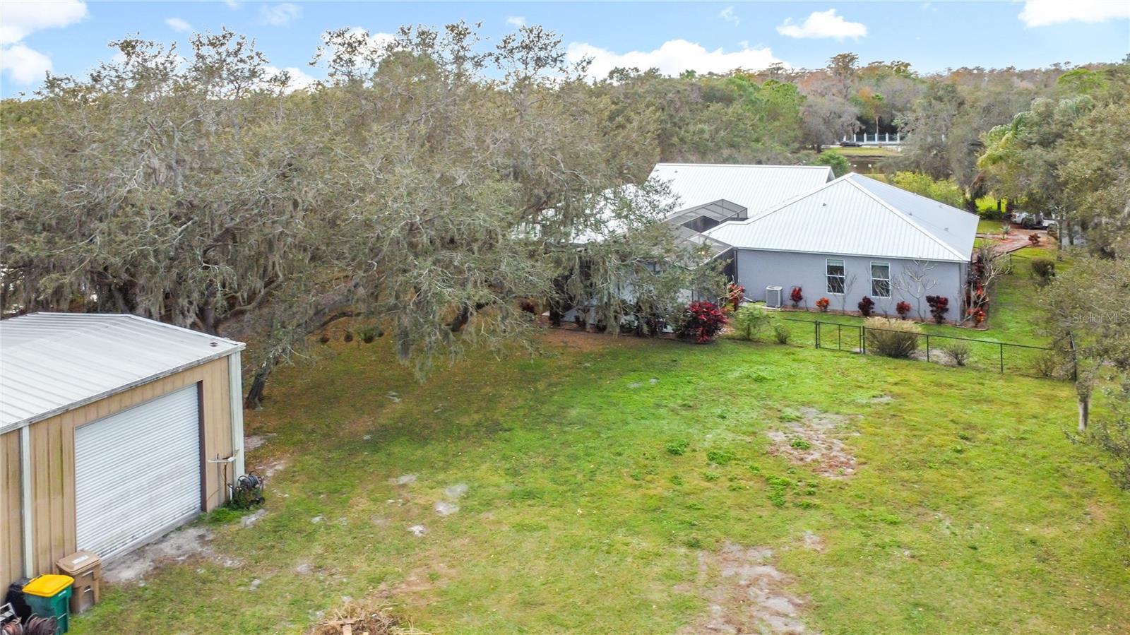 Tucked away in a peaceful country setting on 2.44 acres, this truly unique courtyard-style home offers privacy, flexibility, and exceptional indoor–outdoor living—with plenty of room to live the lifestyle you’ve been dreaming of. This 4-bedroom, 3.5-bath residence is thoughtfully designed around a large, screen-enclosed saltwater pool and spa courtyard, creating seamless flow between indoor and outdoor spaces with multiple access points. NEW METAL ROOF, 2025. 40X30 RED IRON BUILDING WITH ELECTRIC, WATER & 4 ROLL UP DOORS. A striking wood and iron Old World–style front door welcomes you into formal living and dining areas accented by bamboo hardwood flooring and stone feature walls. The private primary wing features wood floors, a spacious walk-in closet, and a spa-inspired ensuite bath with French doors, slate walk-in shower, soaking tub, dual sinks, quartz countertops, and updated cabinetry and fixtures. French doors from the primary suite lead directly to the pool and spa courtyard. Also located on this wing is a large concrete-poured hurricane safe room, ideal for a private office, flex space, or potential 5th bedroom. On the opposite side of the home, the chef’s kitchen is equipped with commercial-grade stainless appliances including a gas range with pot filler, oversized refrigerator, built-in oven and microwave, dishwasher, disposal, and a wine refrigerator built into the custom island. Quartz countertops, tiled backsplash, decorative lighting, a breakfast bar overlooking the family room, separate dinette, and a dedicated laundry room complete the space. Three additional guest bedrooms offer generous closets and flexibility for family, guests, or home office use. Outside, the 2.44-acre property provides endless possibilities—ample space for horses, goats, chickens, gardens, and more, along with plenty of room to park boats, RVs, trailers, and recreational toys. The land is fully irrigated and features a spring-fed pond, a garden with drip irrigation, and an additional irrigation well. Additional highlights include: • All-new metal roof (2025) • 40x30 insulated red iron building with four roll-up doors, electric, and water • Saltwater pool and spa with outdoor shower • Two storage rooms off the courtyard • New water softener • New pool pump • Septic system A rare opportunity to own a versatile country estate offering space, privacy, and exceptional amenities—this property truly must be seen to be appreciated.