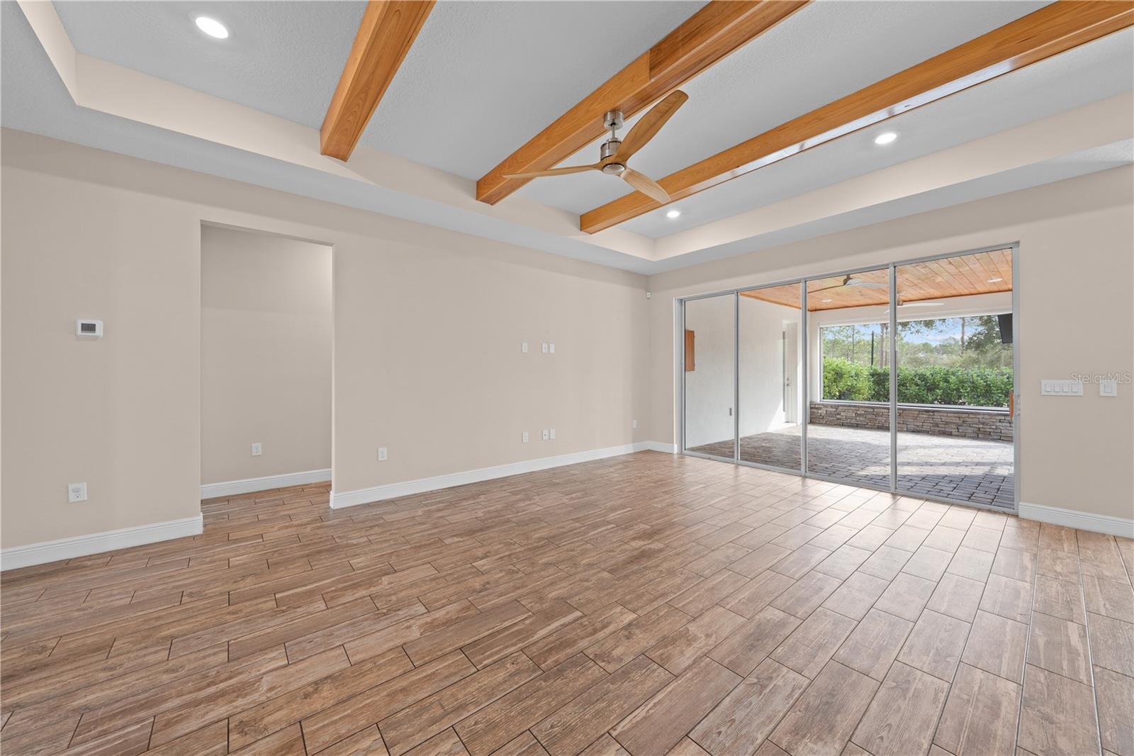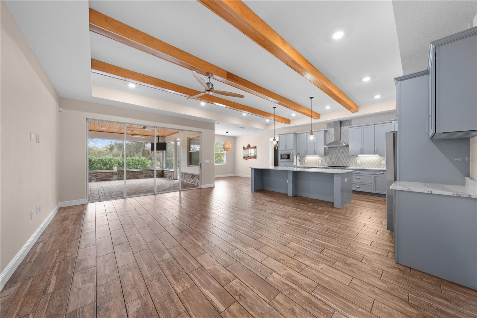 Under contract-accepting backup offers. Welcome to this stunning custom pool home built by Snow Construction, located in the highly sought-after Northshore community. Situated on a half-acre homesite, this beautifully designed residence offers 4 bedrooms, 3 bathrooms, and an oversized 2-car garage with epoxy-coated floors. The heart of the home is the spacious chef’s kitchen, featuring a large center island, 42-inch upper cabinets, soft-close drawers and doors, pull-out storage with trash receptacle, Cambria quartz countertops, tile backsplash, farmhouse sink, ceramic cooktop, microwave, and stainless-steel appliances, including a sidekick refrigerator/freezer. A dedicated wine bar with stem glass holder adds a touch of elegance. Wrapped wood beams flow seamlessly from the family room into the kitchen, while ceramic plank tile flooring runs throughout the entire home—including all bedrooms—offering durability and a clean, modern look. The private primary suite is a true retreat, showcasing tray ceilings, recessed lighting, motorized blinds, abundant natural light, and ample space for a king-size bed. The spa-inspired primary bathroom features dual granite-topped vanities with knee space, a soaking tub, a large walk-in shower with custom tilework, and his-and-hers walk-in closets. Three additional bedrooms are located on the opposite side of the home for added privacy. The fourth bedroom includes a private ensuite bathroom with walk-in shower, a walk-in closet, and direct pool access—ideal for guests or multigenerational living. The laundry room is thoughtfully designed with quartz countertops and wall-to-wall custom cabinetry, and a nearby 4’ x 7’ flex space offers the perfect area for a drop zone, pet room, or extra storage. Step outside to your private backyard oasis overlooking Lake Lizzie. The covered lanai features cypress tongue-and-groove ceilings and motorized retractable screens, creating the perfect setting for year-round entertaining. Enjoy the saltwater pool complete with sun shelf and bubbler, swim bench, paver deck, and aluminum fencing for added safety and peace of mind. Additional highlights include 9’4” plate height, upgraded lighting and plumbing fixtures, recessed lighting, ceiling fans, tray ceilings, an 80-gallon water heater, 5-zone irrigation system, cypress front columns with tongue-and-groove ceilings, a 50-amp RV hookup, a water softener, and a Giraffe wall-mounted pressure cleaning system with a 100-foot retractable hose. Northshore residents enjoy exclusive access to a private community dock and boat ramp, providing direct access to Lake Lizzie and the Alligator Chain of Lakes. Schedule your private showing today and experience lake living at its finest.