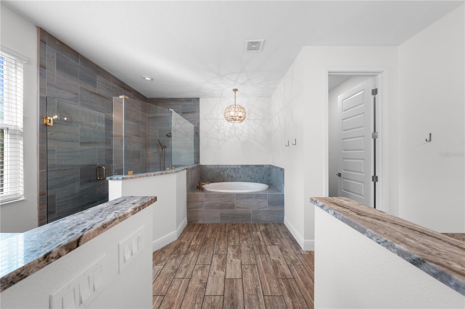 - Ceiling Fans(s), Eat-in Kitchen, Open Floorplan, Solid Surface Counters, Stone Counters, Tray Ceiling(s), Walk-In Closet(s), Wet Bar, Window Treatments