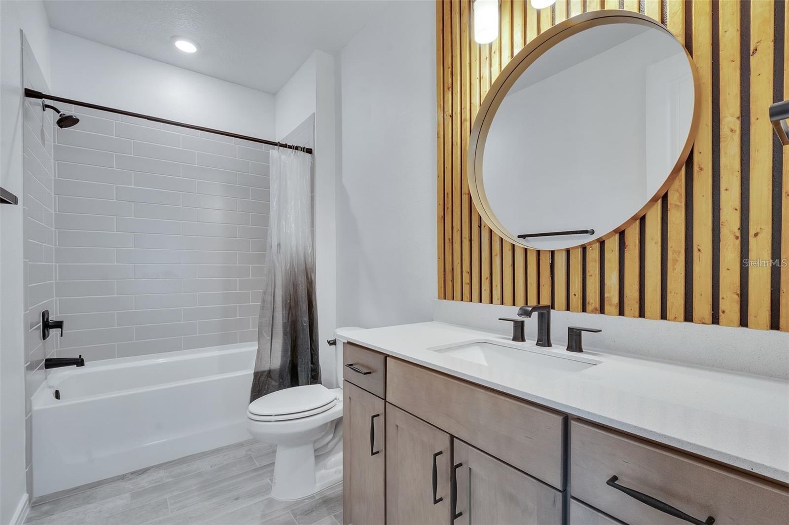 Beautifully upgraded home located in the community of Sunbridge. Situated in Weslyn Park, this elegant residence offers 3 bedrooms, 2 bathrooms, and a thoughtfully designed open-concept layout perfect for modern living. The gourmet kitchen is a true showstopper, featuring premium appliances—including the latest Samsung Bespoke refrigerator—a spacious island with marbleized quartz countertops, cabinetry, a wooden canopy range hood, and contemporary pendant lighting. The primary suite is designed for relaxation, boasting a tray ceiling, accent wall, custom walk-in closet, and a spa-inspired bathroom complete with dual-sink quartz vanity and a glass-enclosed walk-in shower. The secondary bathroom also features designer finishes and quartz countertops. The gathering room impresses with a tray ceiling, stylish accent walls, and colors that seamlessly complement the kitchen and appliances. Throughout the home, you’ll find luxury wood-look porcelain tile flooring (no carpet), treated with a special coating to preserve its rich finish. All kitchen and bathroom cabinets feature soft-close technology. Enjoy year-round comfort with modern ceiling fans in every room, including the covered lanai, all smartphone-controlled for convenience. The two-car garage offers epoxy flooring and an EV charger. The spacious laundry room is equipped with custom cabinetry, a utility sink, and Samsung Bespoke washer and dryer. This energy-efficient home includes paid-off Tesla solar panels and is pre-plumbed for a water softening system. Located just steps from community amenities such as a resort-style pool, walking trails, playground, and dog park, as well as the upcoming mixed-use Marina District—soon to feature waterfront dining, shops, and water activities. Additional highlights include 1 Gig high-speed internet provided by the HOA, a new school and a Publix shopping center just 5 minutes away. Ideally located near Lake Nona, FL-417, and Orlando International Airport, this home offers luxury, convenience, and lifestyle. Don’t wait to build—move right in and start enjoying everything in Sunbridge. Schedule your private showing today!