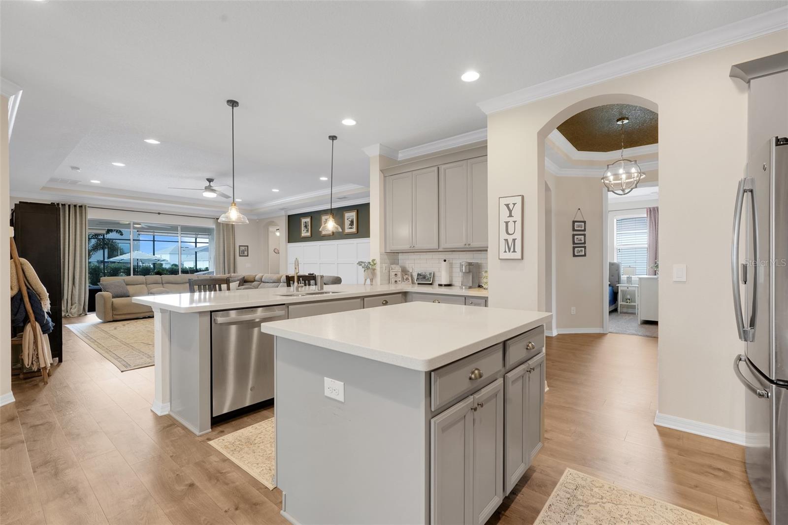 - Crown Molding, Eat-in Kitchen, High Ceilings, Kitchen/Family Room Combo, Open Floorplan, Primary Bedroom Main Floor