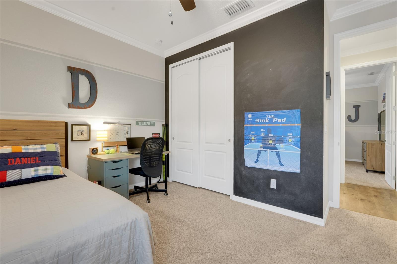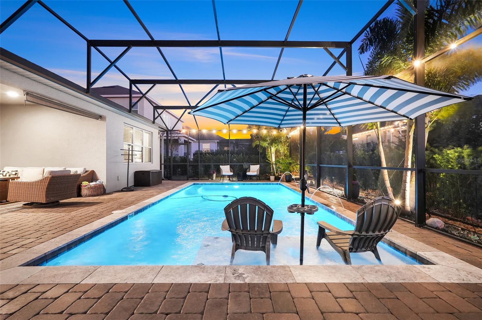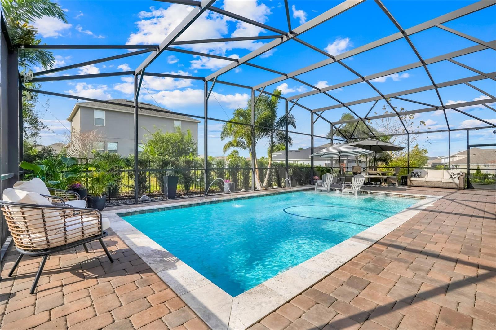 Welcome to this stunning, upgraded home offering 4 bedrooms, 3 full bathrooms, and over 2,800 square feet of thoughtfully designed living space. High ceilings and an open floorplan create a bright, airy atmosphere, while expansive sliding doors open seamlessly to the lanai, delivering true indoor/outdoor living. This home features not one, but two versatile flex/bonus rooms, ideal for a home office, den, formal dining room, playroom, workout room, or whatever suits your lifestyle. The primary suite offers a private ensuite bathroom with dual sinks, private water closet, and dual walk-in closets. One of the guest bedrooms also enjoys its own ensuite, offering comfort and privacy for family or visitors. Situated on a a highly desirable, oversized, fully fenced corner lot, the property offers ample parking due to the corner lot location. Elegant, mature landscaping with decorative garden curbing and tasteful uplighting in both the front and back yard makes this home truly stand out. Step outside to your own private oasis featuring a heated, fully screened-in pool with a sun shelf, creating a resort-style retreat perfect for relaxation or entertaining year-round. Custom work and high-end upgrades are found throughout the home, including crown moldings, tray ceilings, extra tall 8-foot doors, custom 42” kitchen cabinets, quartz countertops, custom accent wall in family room, and custom pantry and laundry room. The washer, dryer, and dishwasher were all replaced in 2025, adding peace of mind and modern convenience. This extremely well maintained and exceptional home combines style, functionality, and resort-like living—don’t miss the opportunity to make it yours. Canyons at Highland Ranch offers a large resort-style community pool, splash pad and playgrounds, walking and nature trails, pet stations and dog park, outdoor recreation spaces such as sand volleyball courts, basketball court, and firepit gathering areas. It's close proximity to A-rated schools, shopping, and major commuter routes make it ideal for staying local or easy travels to Orlando theme parks or Downtown Orlando.