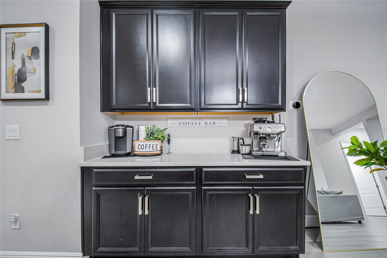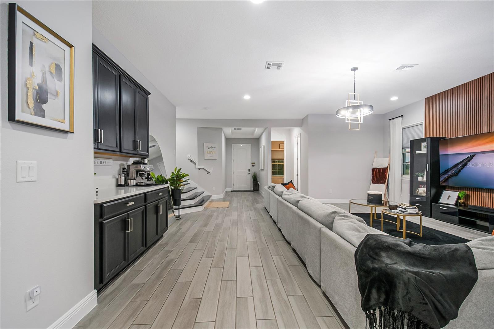- Eat-in Kitchen, Kitchen/Family Room Combo, Open Floorplan, Solid Surface Counters, Solid Wood Cabinets, Split Bedroom, Stone Counters, Thermostat, Tray Ceiling(s), Walk-In Closet(s)