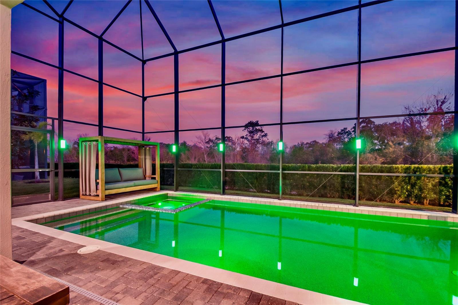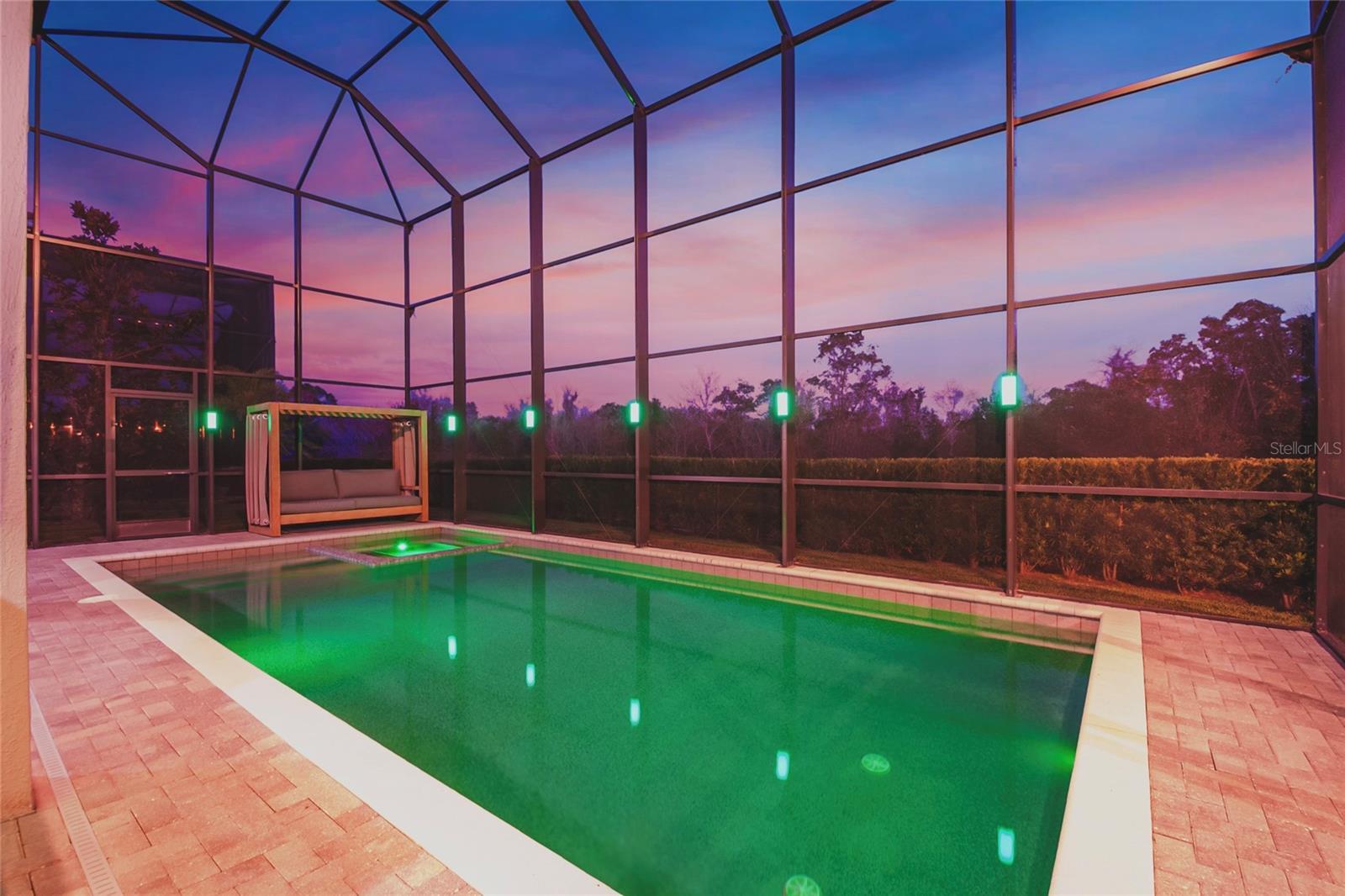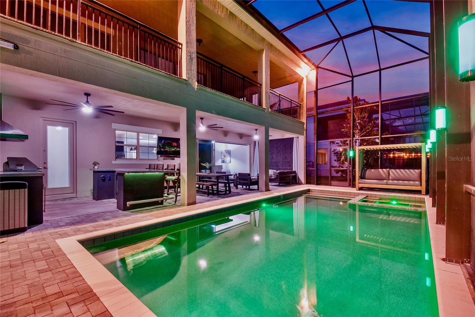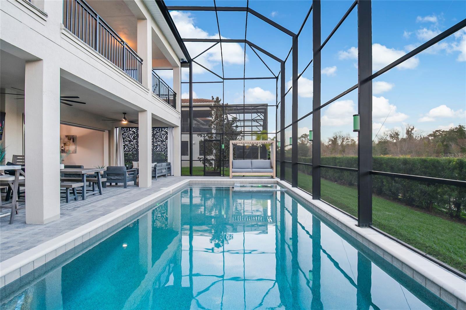 Welcome to 13415 Alderley Drive, a beautifully enhanced Pinhurst model located within the prestigious, guard-gated community of Eagle Creek in Lake Nona. Featuring thoughtfully curated upgrades and upscale finishes throughout, this exceptional residence delivers an elevated, resort-style living experience at home. This 5-bedroom, 5-bathroom features exceptional structural upgrades, including fifth bedroom with en-suite bath, an additional second-floor balcony, a dedicated electric car charger and complete home water softener, delivering the perfect blend of modern convenience and luxury living. From the moment you arrive, lush tropical landscaping, an extended brick paver driveway, tile roof, and inviting front porch create stunning curb appeal. Inside, elegant tile flooring flows past the first-floor guest suite into a bright, open-concept living space ideal for everyday living and entertaining. The fully loaded gourmet kitchen is a standout, featuring Tahoe Maple Espresso cabinetry, stainless steel appliances, quartz countertops, a walk-in pantry, and an oversized center island that seamlessly connects the kitchen, dining, and living areas. Upstairs, the serene primary suite offers a private retreat with two walk-in closets, a private balcony, and a spa-inspired bath complete with dual vanities, a dressing island, an oversized dual-head walk-in shower, and a private water closet. Three additional bedrooms, three full bathrooms, and a secondary living area with balcony access complete the upper level. Indoor-outdoor living shines with three-panel sliding glass doors opening to a covered, screened-in lanai featuring a fully equipped summer kitchen, custom outdoor fireplace, and a resort-style cabana overlooking a sparkling heated pool and tranquil conservation views perfect for entertaining or relaxing while enjoying Lake Nona’s beautiful sunsets. Additional highlights include a cabana bath, fenced backyard, and expansive outdoor dining and lounge spaces. Eagle Creek is a master-planned luxury community renowned for its championship golf course and resort-style amenities, including multiple community pools, a state-of-the-art fitness center, tennis and basketball courts, dog park, playgrounds, and an elegant clubhouse with a full-service restaurant and bar. Offering an exceptional balance of comfort, sophistication, and functionality, this residence is ideal for discerning buyers seeking upscale living in one of Lake Nona’s most sought-after communities. Conveniently located near top-rated schools, premier shopping and dining, Orlando International Airport, and major highways, this exceptional residence redefines luxury living—schedule your private showing today and experience it firsthand.