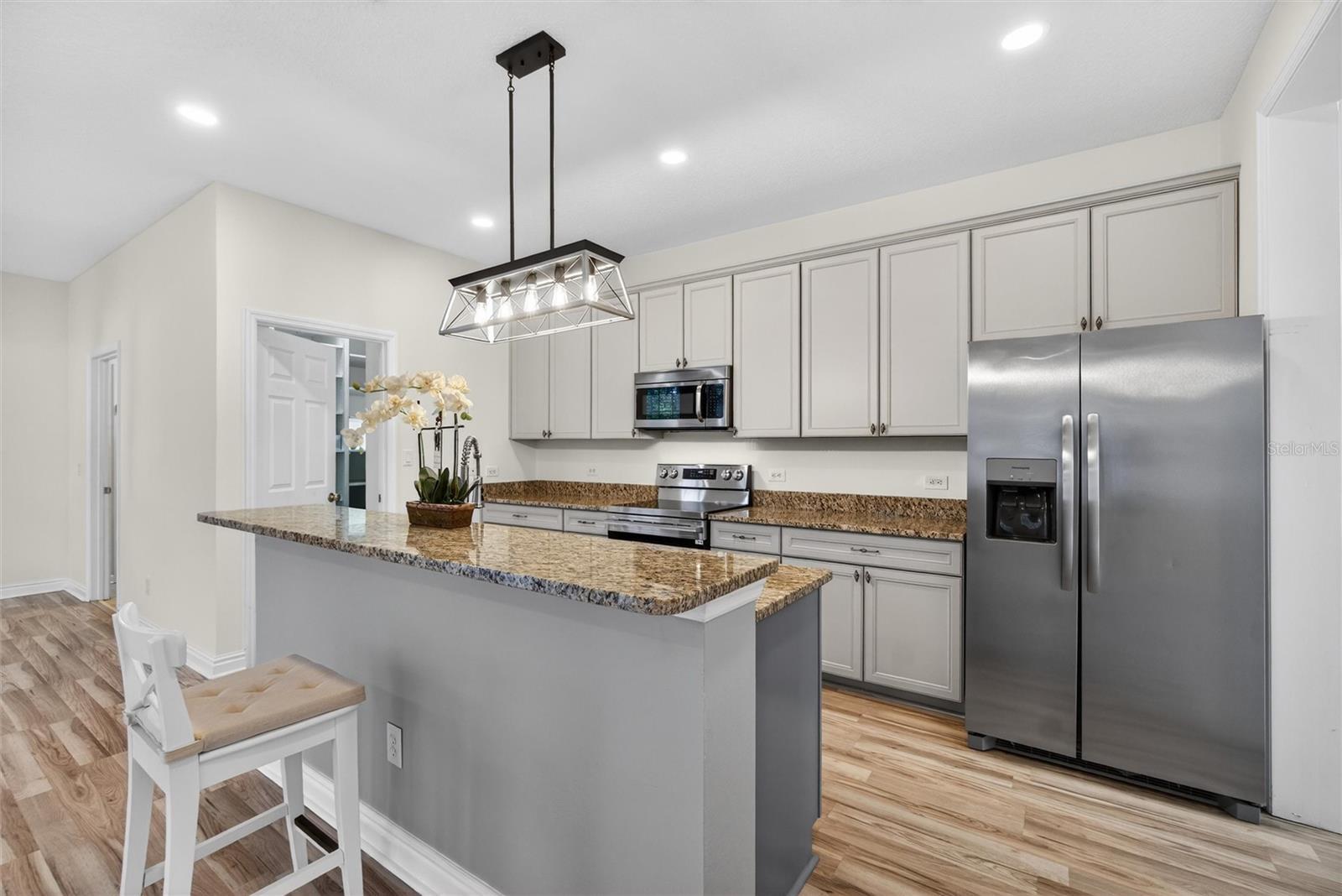- Ceiling Fans(s), Kitchen/Family Room Combo, PrimaryBedroom Upstairs, Stone Counters, Walk-In Closet(s), Window Treatments