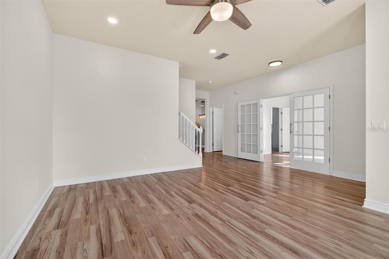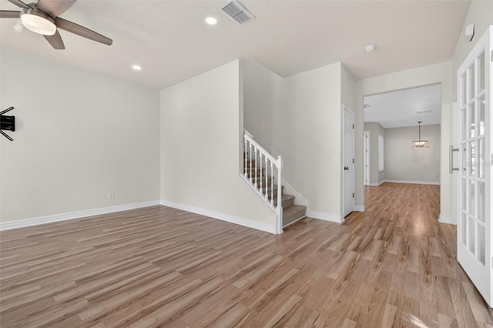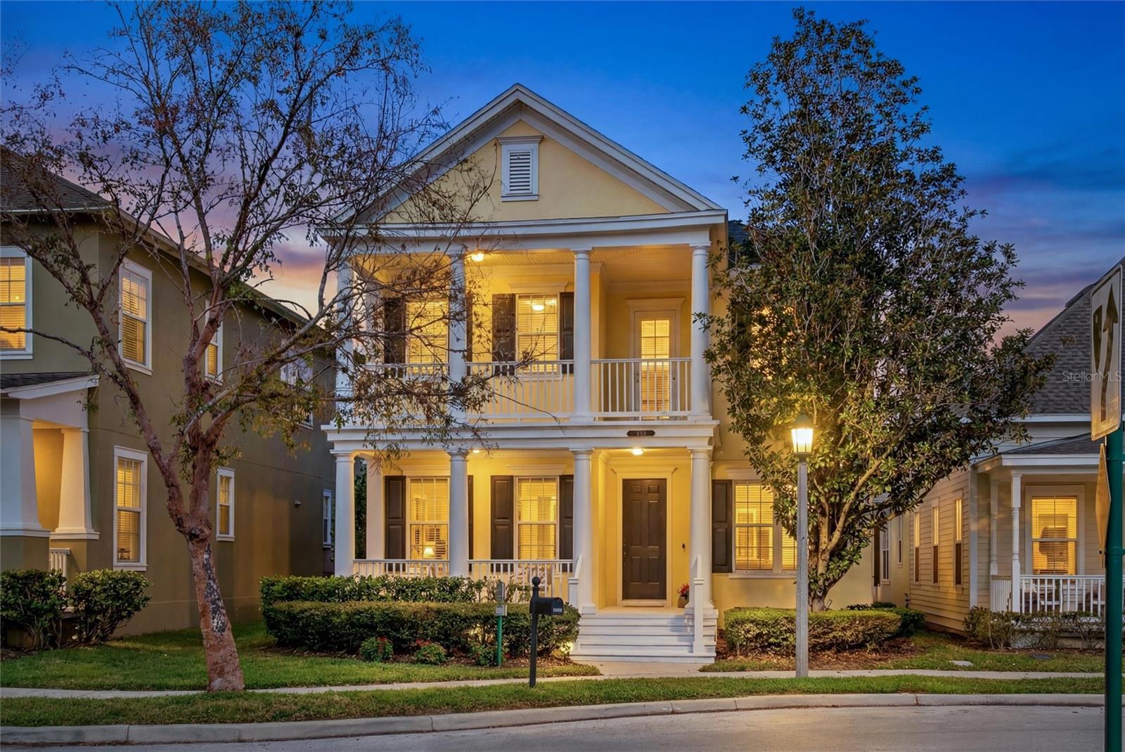 This popular LORIN model is in the quiet neighborhood of Artisan Park in Celebration. It faces a beautiful passive park with Artistic Mosaic tile balls to admire as you relax on either of your *DOUBLE COVERED PORCHES. The Interior is Freshly painted with crisp, neutral colors coordinating with * Luxury vinyl flooring throughout the first level. To the left as you enter the home is an extra-large * LIVING AREA [16x18] which offers flexible options for your personal lifestyle accommodation. To the right as you enter the home are glass paneled French Doors to create a perfect private *HOME OFFICE, Library or Formal Dining Room. *The KITCHEN has an oversized Granite Island for dining options, plus a * Large EAT-IN AREA [11.7x13]. * A BUTLER'S PANTRY separates the Kitchen from the Formal Dining Room or Home Office. An extra Large * Walk-in PANTRY with custom organized shelving is very convenient. *Stainless Appliances include a 2026 glass top range and oven and the counter coordinates nicely with the 42" cabinets. Conveniently located next to the kitchen is the *LAUNDRY ROOM with Front Load Washer and Dryer. The Open Floor Plan offers the Kitchen flowing to the * GATHERING ROOM [15x18] and extends to the SCREENED REAR PORCH which overlooks the large *PRIVATE FENCED AND PAVERED REAR PATIO. The second level has a Large * PRIMARY ENSUITE BEDROOM with a large custom walk-in closet. A special feature is access to the outdoor covered balcony which overlooks the peaceful streetscape. The Additional TWO BEDROOMS also have Organized Custom Closets. * ENERGY EFFICIENT, this home has a recent Dual-Zone AC system, 2021 Water Heater and 2019 ROOF. In addition to the Large * TWO CAR GARAGE with hanging storage shelves is a coveted * PARKING PAD for two full size vehicles. Enjoy the Artisan Clubhouse and amenities: Fitness Center, Resort Style Pool & Spa, Restaurant/Bar, Banquet Room, Outdoor Kitchen and planned activities.