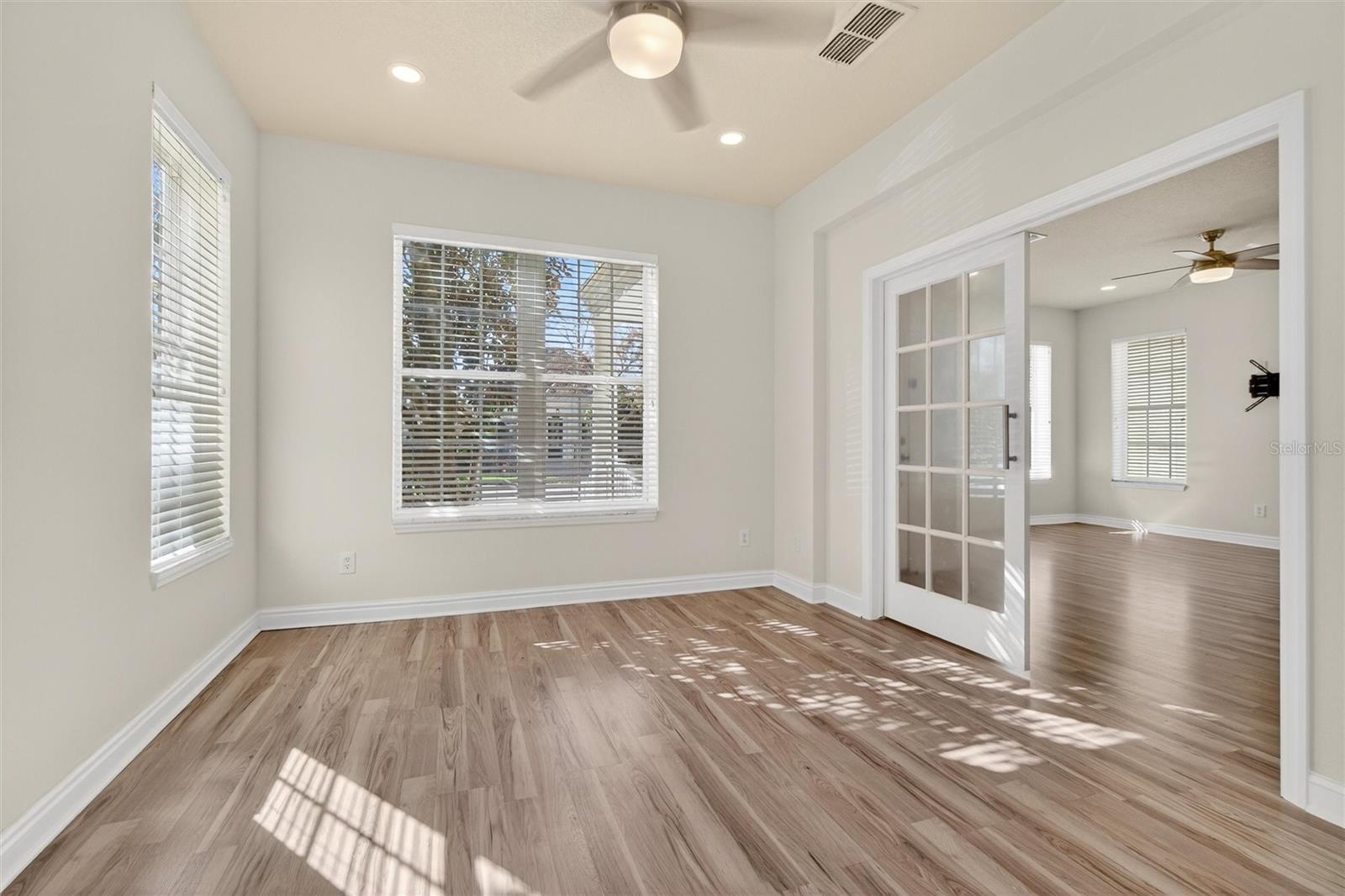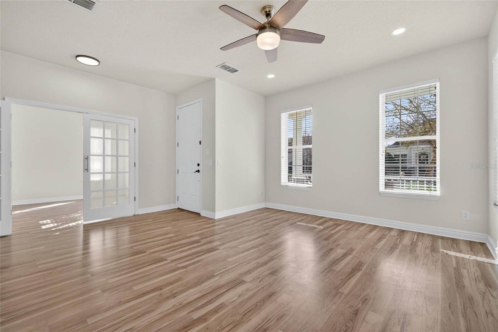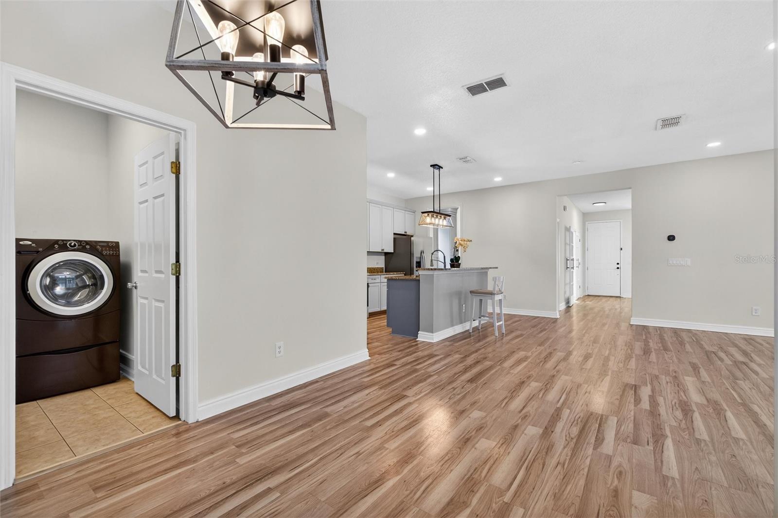 This popular LORIN model is in the quiet neighborhood of Artisan Park in Celebration. It faces a beautiful passive park with Artistic Mosaic tile balls to admire as you relax on either of your *DOUBLE COVERED PORCHES. The Interior is Freshly painted with crisp, neutral colors coordinating with * Luxury vinyl flooring throughout the first level. To the left as you enter the home is an extra-large * LIVING AREA [16x18] which offers flexible options for your personal lifestyle accommodation. To the right as you enter the home are glass paneled French Doors to create a perfect private *HOME OFFICE, Library or Formal Dining Room. *The KITCHEN has an oversized Granite Island for dining options, plus a * Large EAT-IN AREA [11.7x13]. * A BUTLER'S PANTRY separates the Kitchen from the Formal Dining Room or Home Office. An extra Large * Walk-in PANTRY with custom organized shelving is very convenient. *Stainless Appliances include a 2026 glass top range and oven and the counter coordinates nicely with the 42" cabinets. Conveniently located next to the kitchen is the *LAUNDRY ROOM with Front Load Washer and Dryer. The Open Floor Plan offers the Kitchen flowing to the * GATHERING ROOM [15x18] and extends to the SCREENED REAR PORCH which overlooks the large *PRIVATE FENCED AND PAVERED REAR PATIO. The second level has a Large * PRIMARY ENSUITE BEDROOM with a large custom walk-in closet. A special feature is access to the outdoor covered balcony which overlooks the peaceful streetscape. The Additional TWO BEDROOMS also have Organized Custom Closets. * ENERGY EFFICIENT, this home has a recent Dual-Zone AC system, 2021 Water Heater and 2019 ROOF. In addition to the Large * TWO CAR GARAGE with hanging storage shelves is a coveted * PARKING PAD for two full size vehicles. Enjoy the Artisan Clubhouse and amenities: Fitness Center, Resort Style Pool & Spa, Restaurant/Bar, Banquet Room, Outdoor Kitchen and planned activities.