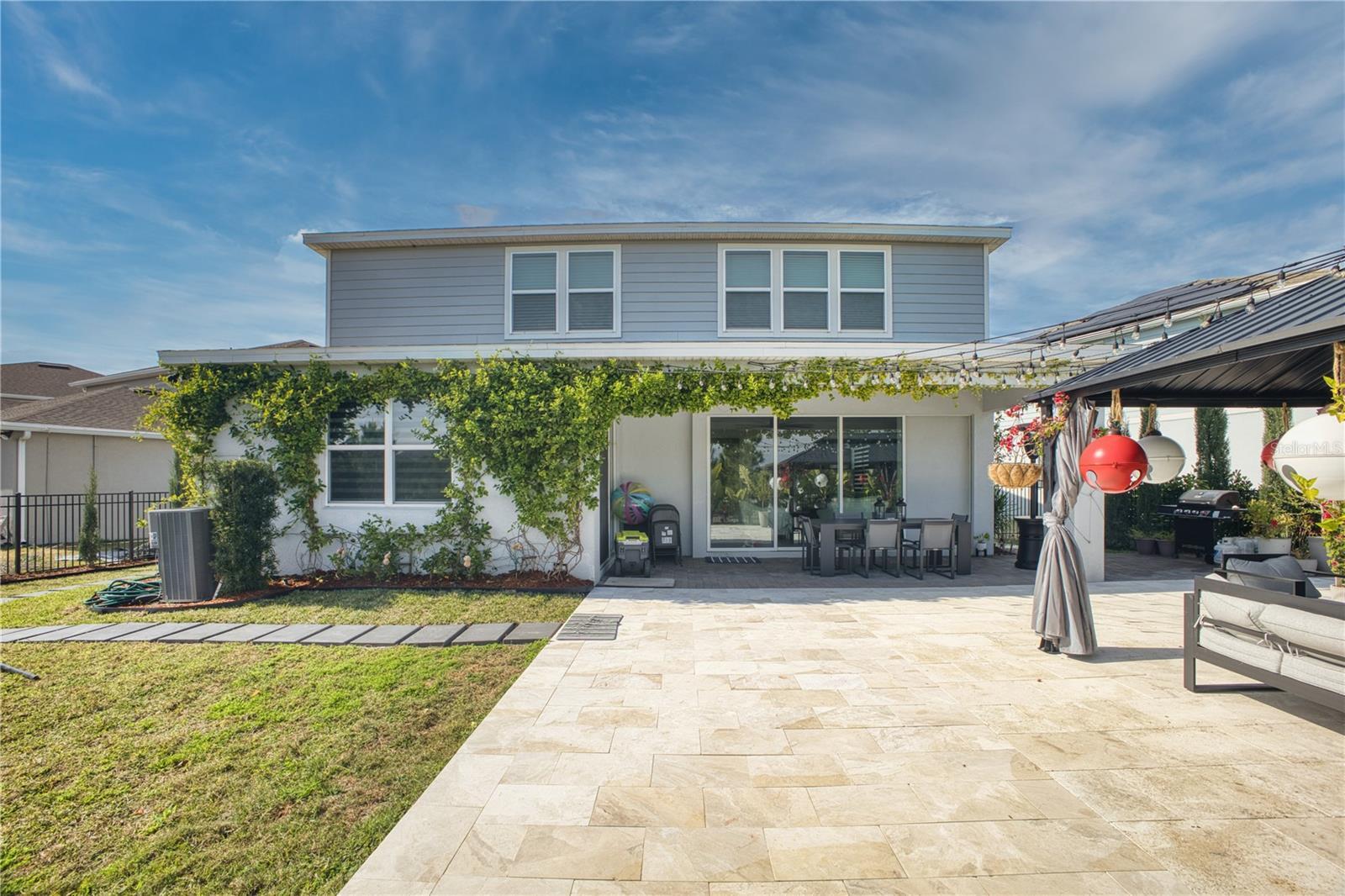 Welcome to the Lakeview Community! This stunning single-family residence features 5 spacious bedrooms, 4 full bathrooms, and a convenient half bath. The open-concept kitchen and living area, equipped with stainless steel appliances and modern touches, seamlessly connect to the backyard through full retractable sliding doors. The first floor includes a comfortable mother-in-law suite with a private bathroom and a versatile flex room for added convenience. Upstairs, you'll find 4 additional bedrooms, a laundry room, and a spacious great room perfect for family time or relaxation. Outside, enjoy a comfortable and contemporary gazebo, ideal for entertaining or unwinding. This home also showcases a modern lamp set and an advanced lighting system, adding elegance and ambiance to every corner. With its thoughtful design, enlarged kitchen, and modern light switches, this fantastic floorplan has everything your family needs!