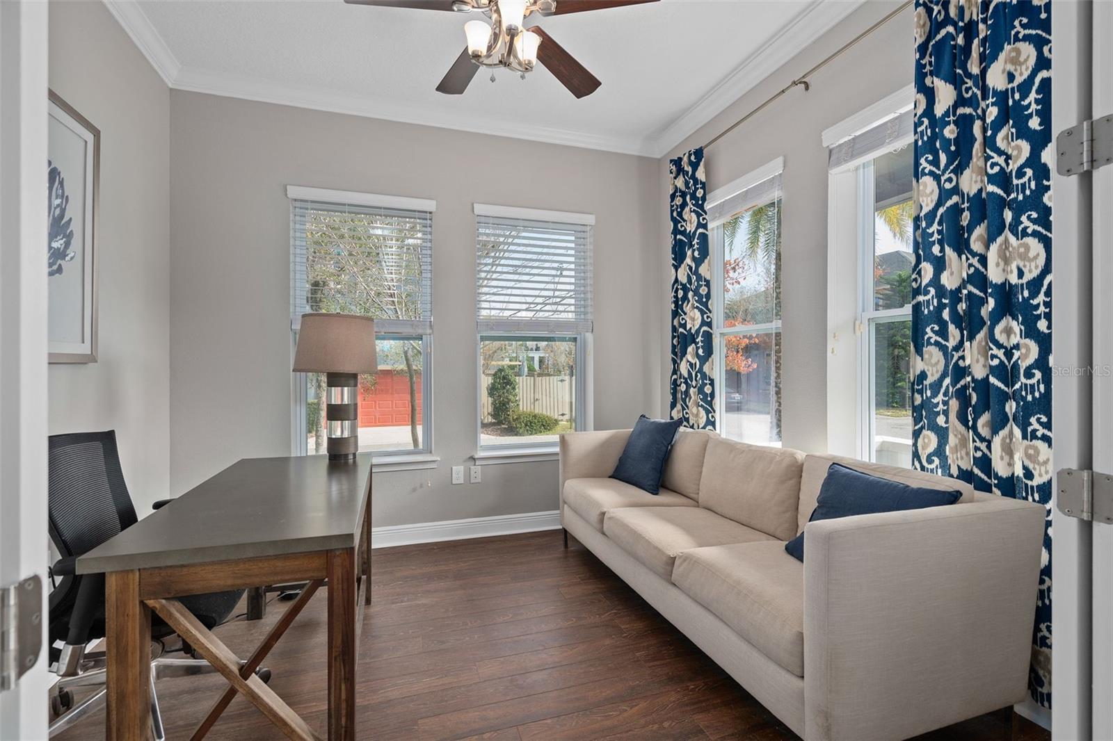 Under contract-accepting backup offers. **PRIVATE OUTDOOR OASIS WITH HEATED POOL & SPA**SITUATED ON A CORNER LOT**IN LAUREATE PARK, LAKE NONA & THE MEDICAL CITY**Gorgeous Light-Filled Home Located in the heart of Laureate Park and just a short distance from the elementary school, this thoughtfully designed four-bedroom, two-story home offers a modern layout with comfortable everyday living in mind. The bright, open floor plan is welcoming from the moment you enter, featuring a dedicated home office, a functional valet area with generous storage, and an impressive foyer with 20-foot ceilings that set an immediate impression of light and space. The main living area brings the kitchen, dining space, and family room together for easy flow and connection. The kitchen features clean-lined cabinetry, a subway tile backsplash, stainless steel appliances, granite countertops, and a spacious walk-in pantry—ideal for both daily use and entertaining. Large windows overlook the private backyard, allowing natural light to fill the space. 2 Full Baths, 4 Beds Upstairs All four bedrooms are located upstairs, along with two full bathrooms, including a Jack-and-Jill layout. The primary suite is set apart as a quiet retreat, featuring a large walk-in closet and a spa-style bathroom with an oversized shower and abundant natural light. The additional bedrooms are well-sized and offer ample closet space for family or visitors. Private Outdoor Living Outside, the backyard with multiple palm trees and mature landscaping provides privacy is designed for year-round Florida enjoyment, complete with a pool, spa, paver patio, and mature landscaping offering both privacy and flexibility for relaxing or hosting guests. This home combines modern style, practical spaces, and an outdoor setting that extends the living area and makes full use of every square foot of this desirable property! Laureate Park Amenities When this home becomes yours, you will have access to Laureate Park’s abundant amenities. Community life is the perfect package of nature, activity, and entertainment possibilities. An aquatic center comprises two lap pools, sand volleyball, hammocks, and a children’s water park. Gym enthusiasts will enjoy Laureate Park’s Fit Gym. Venture out to zipline, bike, walk, or just relax at the community’s parks and on its trails. Don't miss this opportunity to own a unique home in Laureate Park!