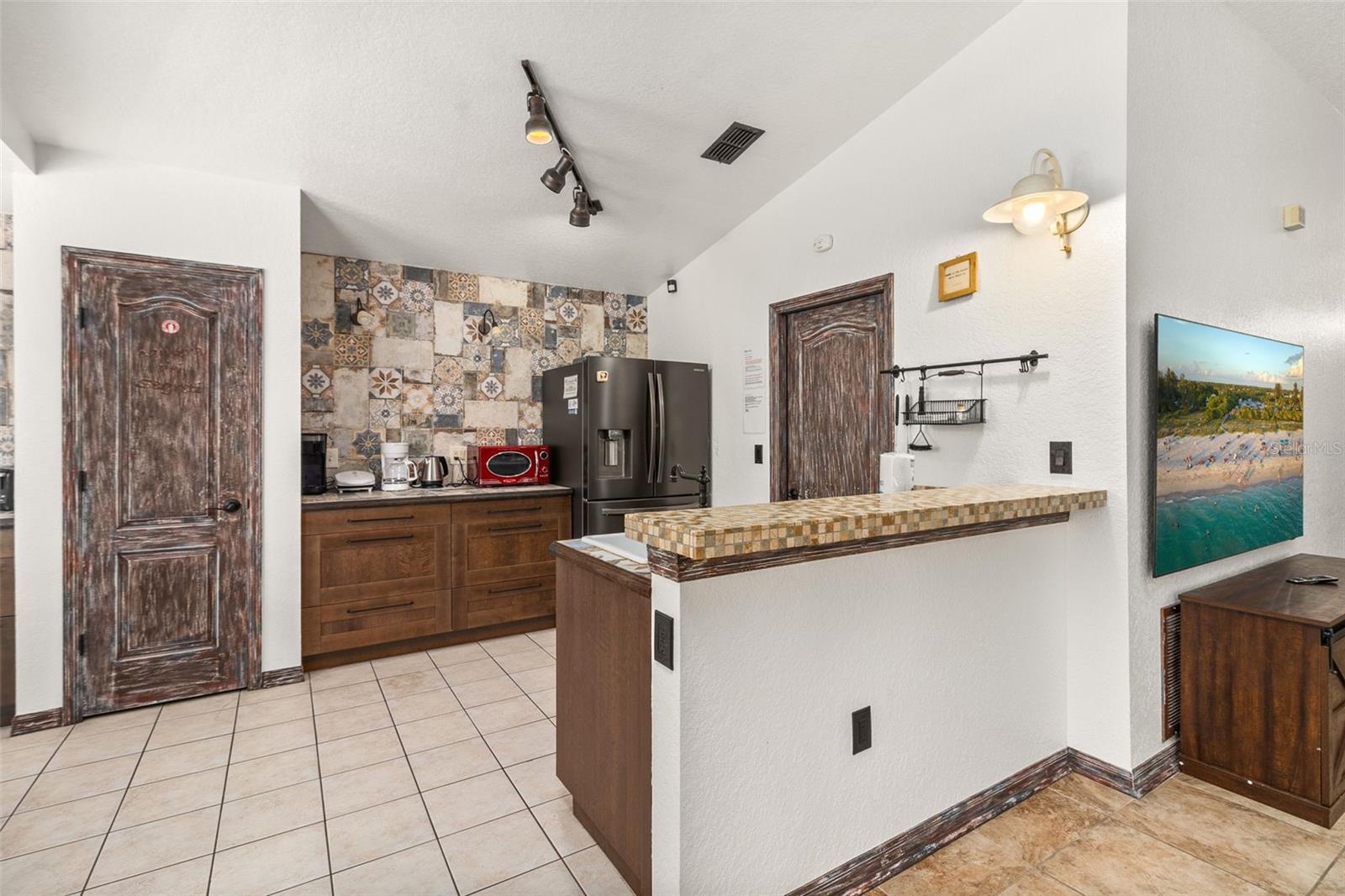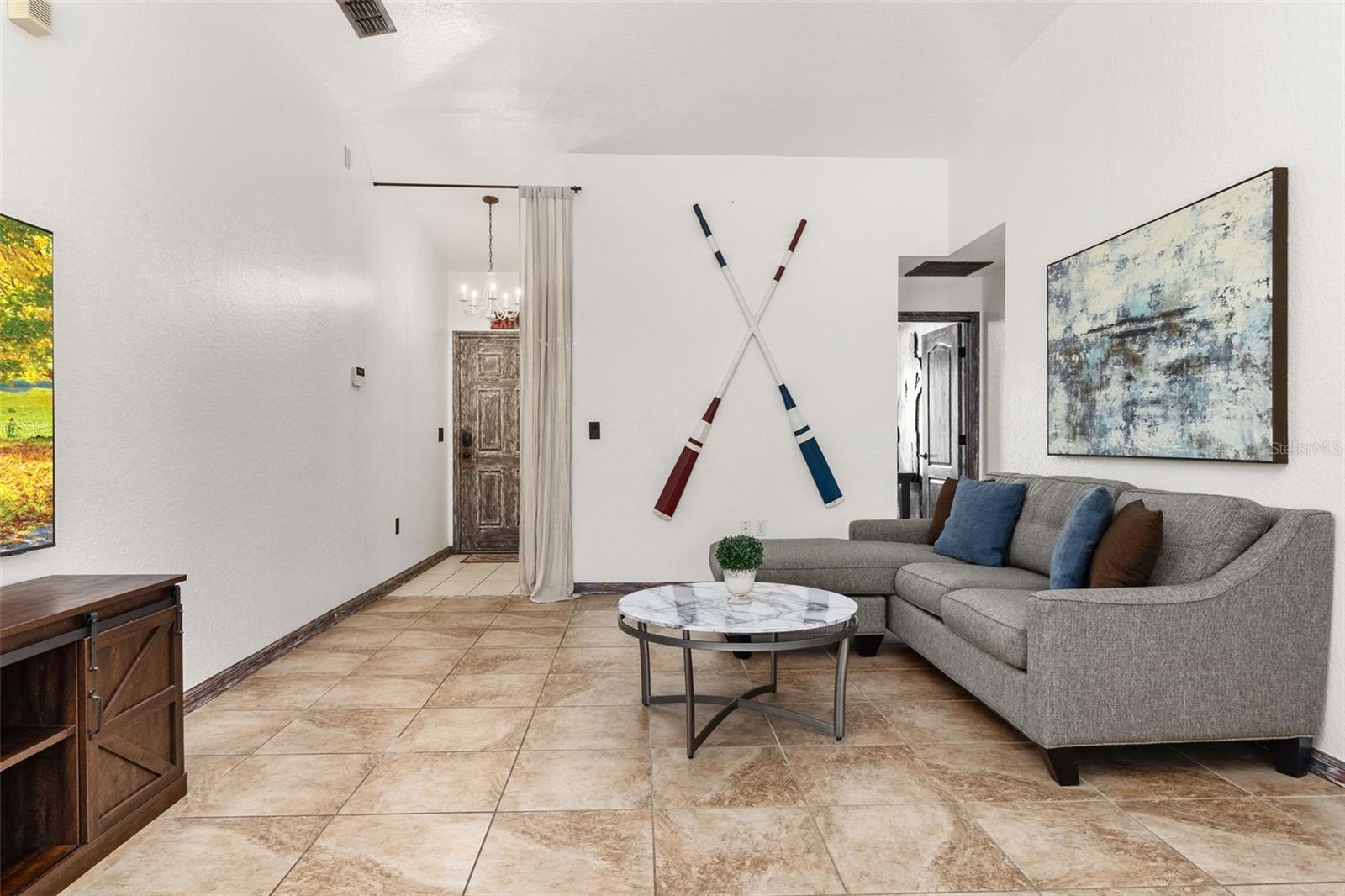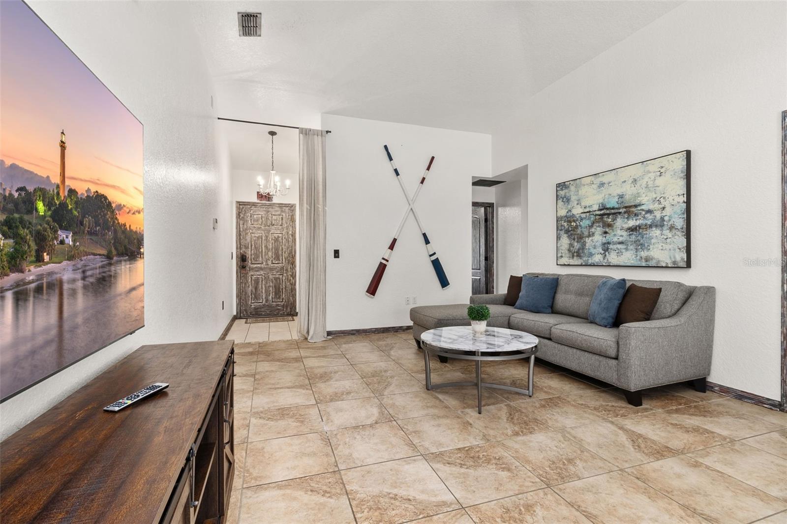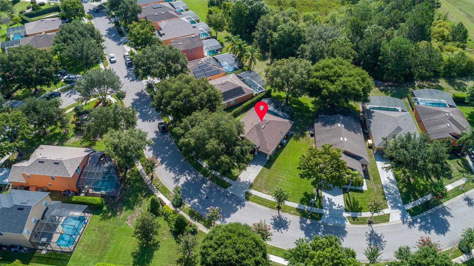 Welcome to tropical Paradise in this UPGRADED TURNKEY POOL HOME located on the PREMIUM OVERSIZED LOT (0.24 Acres) with LUSH CONSERVATION VIEWS! This home is ideally designed for family entertainment & relaxing living and showcases fantastic spacious POOL DECK with SCREENED ENCLOSURE and COVERED LANAI where family and friends come together to enjoy the outdoors. Sought after SINGLE STORY floor plan features beautiful CUSTOM DESIGNED RENOVATIONS as seen in the best home design magazines! QUALITY HOME IMPROVEMENTS include: NEWER ROOF (2021) with GUTTERS (2021), highly efficient variable speed 20 Seer Carrier HVAC SYSTEM (2019) for guaranteed comfort and the most savings. This favored layout features deep VAULTED CEILINGS and CERAMIC TILE FLOORING throughout (no carpet!); desirable OPEN FLOOR PLAN. Fall in love with impressive DESIGNER KITCHEN featuring beautiful custom pull out cabinetry complimented by stylish tile backsplash, upgraded STAINLESS STEEL APPLIANCES, RANGE HOOD venting outside for pleasant cooking experience, upgraded custom made countertops. The cozy BREAKFAST NOOK overlooks a sparkling pool area and opens up into a bright and roomy family room. TWO PRIVATE DELUXE MASTER SUITES featuring OWNER BATHROOMS - both recently remodeled. Guest bedroom with separate full bathroom featuring recent renovations as well. Custom painted door frames and doors with matching upgraded hinges & door handles; replaced ceiling grille covers, upgraded light fixtures and custom tile accent walls in the bathrooms and the lanai. Pie shaped lot allows extra space between the neighbors; privacy hedges planted outside complementing peaceful views. One car garage features custom shelving for extra storage, WASHER & DRYER included in the sale; 2-car tandem driveway. The Silver Creek HOA fees include cable TV, internet and lawn care; exterior re-paint every 5 years and NO CDD! Desirable location in the well established yet still growing Four Corners area conveniently located within only a short drive to the Town Center at Cagan Crossings, Disney parks, premium shopping & dining, minutes away from a beautiful Lake Louisa State Park, close to the best Florida beaches and all major roads. This is a lovely home perfect for a first-time home Buyer or a small family primary residency, second home or a profitable investment property. Zoning allows the flexibility of short term vacation rentals or long term leases. We welcome you to schedule a private showing and check it out!