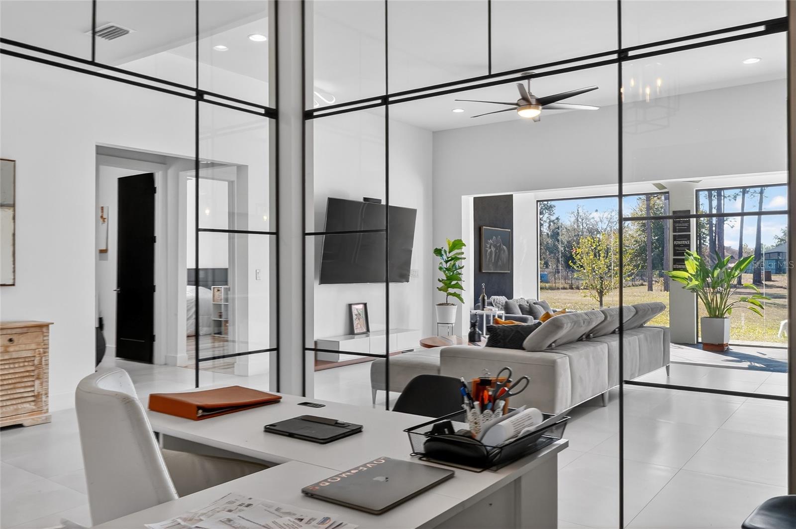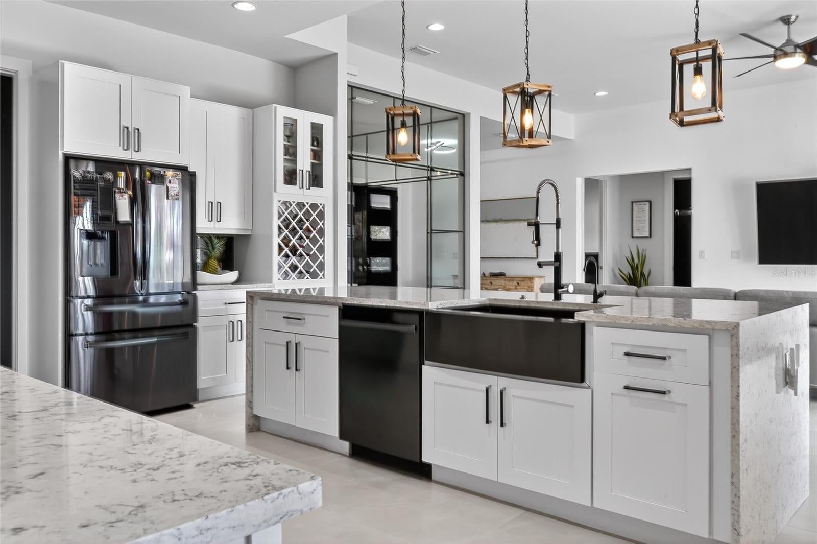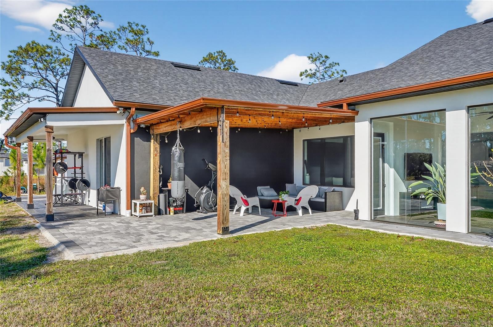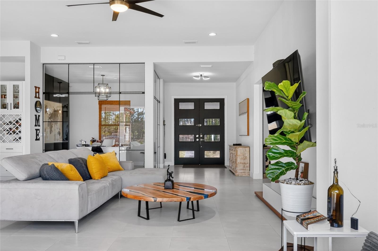 Welcome to 19438 Sheldon St, a refined modern residence located in the highly desirable Wedgefield community, offering the rare balance of country-style living with city convenience. This prime location provides easy access to the Lake Nona area, major roadways, and a comfortable drive to Florida’s beautiful beaches. NO HOA and 1.7 acres provide the space, privacy, and freedom, all while remaining close to Orlando amenities and the coast. It offers the possibility of building another property, an extra storage unit and more. Inside, the home features an open-concept design with high ceilings and abundant natural light. Expansive windows and sleek glass accents create a seamless flow between the living, dining, and kitchen spaces, delivering an elegant yet inviting atmosphere. The chef-inspired kitchen showcases quartz countertops, a generous island, white wood cabinetry, stainless-steel appliances, and an oversized walk-in pantry, ideal for both elevated entertaining and everyday living. Clean architectural lines and modern-industrial details add timeless sophistication throughout. The primary suite offers a private retreat with a spa-style bathroom featuring a jacuzzi tub. An oversized laundry room and oversized garage enhance functionality and storage, while a fully paid water filtration and security system provides added value and peace of mind. A covered patio extends the living space outdoors, perfect for relaxing or entertaining while enjoying the tranquillity of the area. A distinctive opportunity combining modern luxury, thoughtful upgrades, and an exceptional location. Schedule your private showing today!