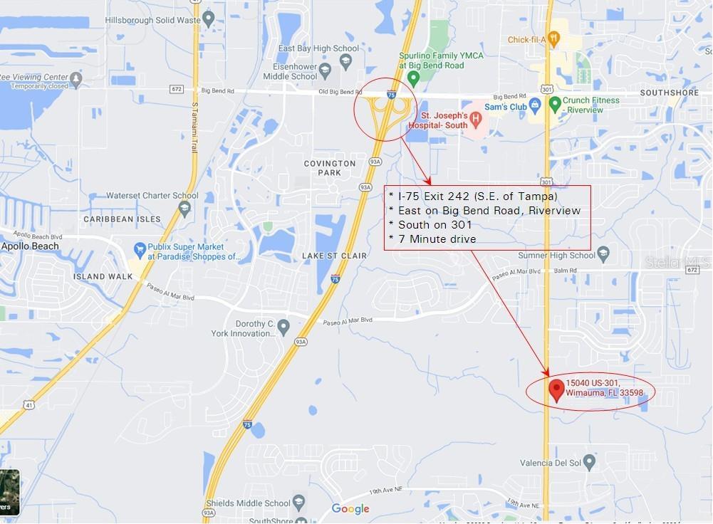 See Virtual Tour ~ Currently zoned ASC-1 - Future zoning SR-4 mixed use of neighborhood commercial & 4 homes per acre on the rest - Strip Mall, Offices, Storage, Car Wash ~ This is breathtaking lot has amazing ponds & trees on the South side that will make a stunning family common area, including fishing ~ 301 development is now only 1 mile North & moving South fast ~ Currently a ‘Truck service & Trailer parking business’ for 20 years with up to 117 Trailer parking spaces - the current grand-fathered use of CI (Commercial Intensive) will NOT be an allowed future use ~ 7 Buildings - 5/3 House 1,709 sq/ft, A/C Office with reception & 3 upstairs rental rooms, 3 Truck service sheds with 8 service bays, 2 Manufactured homes, Paved customer parking lot for 14+ cars ~ 2 Lots:- A&B - 15040 & 15048 S 301 HWY - 8.23 Acres - Folio#’s:- 077938-0625 & 077938-0700 - Both lots raised 3+ feet to be above flood line - No hurricane flooding or building damage in 20 years ~ Lot A: 5.6 of which 5.36 acres is dry - Lot B: 2.64 of 1.67 acres is dry (with fill it can be increased to 2.3 acres dry) ~ LOCATION: 7 Minute drive from I-75 Exit 242 (Big Bend Rd) - see pictures.