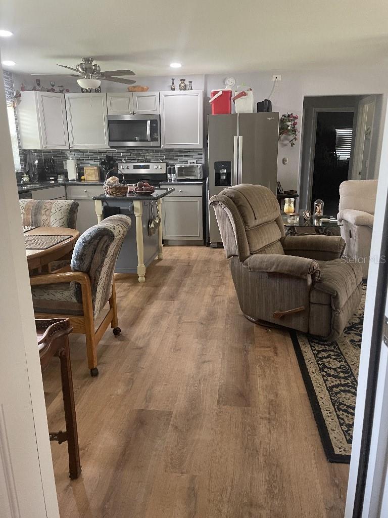 Location location location high and dry great visibility both ways on busy highway 301 mile north of wildwood first deed 143\' highway frontage depth of 140\' second 25\' highway frontage depth of 140\' (parking) 2021 new gavalume master rib silver metal roof 2021 goodman 2.5 ton heat pump 16 seer with 5kw heat new a/c ducts returns in all of home-new copper drain set Pella 250 single hung double pane low e argon windows new electric meter-riser outdoor panel 6/12 circuit panel new wires-boxes-outlets-decora switches phone/tv motion led lights and outlets at four corners outside home Lorex dvr 4K camerasnat 4 corners smart phone capable Prewired alarm system all windows and doors-2 keypads New cpvc water lines and schedule 40 waste lines Curved shower/door with 2 walls of glass tile- 4 niches New water heater-vanity-toilets and all delta faucets new 1 hp.submersible water pump-control relays new hunter sprinkler valves-sch. 40 pvc pipe-perimeter of home with timer and hunter heads new french doors built in shade- metal front entry door New 6 panel raised interior passage doors Schlage lever handle interior and exterior lock sets Baseboard 5 1/4\" with new drywall baths and hallways New attic batts r-30 insulation- new soffit and fascia Lifeproof waterproof laminate flooring throughout home Over 3/4\' red oak original flooring New kitchen cabinets with blue pearl granite countertop on widow sills in main room and garage area room New stainless steel dishwasher - microwave- pantry- Curved block exterior walls- new stucco paint residential /light industrial can be rezoned commercial All permitted work Sumter county 2020-1 Board on board panel fence 6\' high back-side of property Live oak grand daddy tree front and back trimmed up Private septic system and drain field in front.
