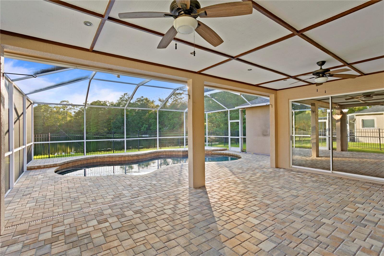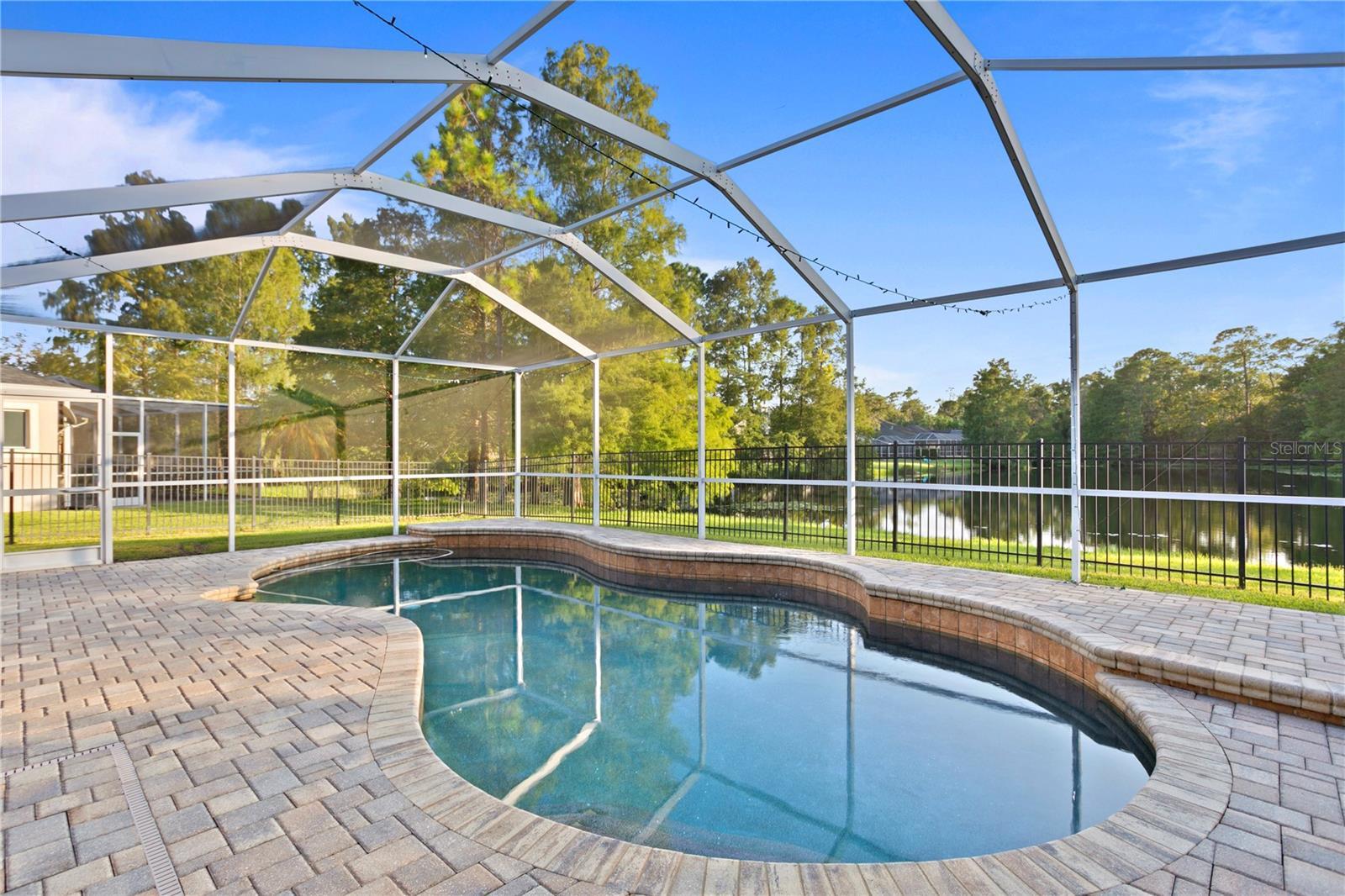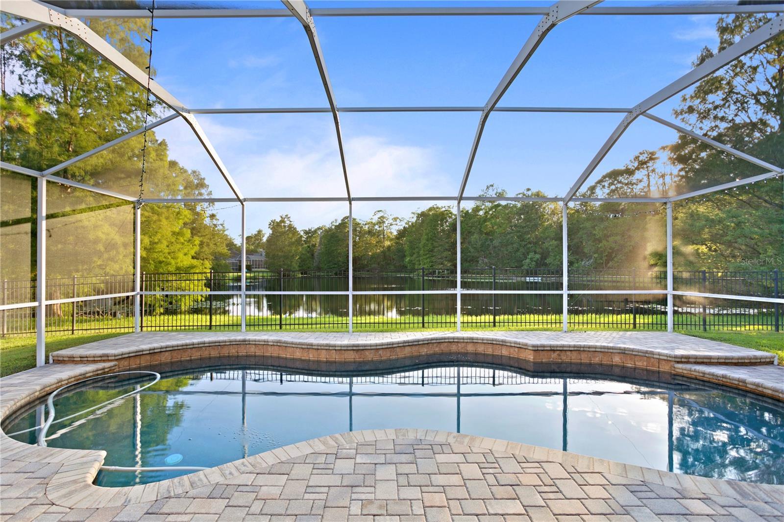 Located in the tree-lined neighborhood of Shires on a rare .21 acre lot with an expansive pond and conservation view, a fully fenced backyard, and a gas heated saltwater pool! This home features 4 Bedrooms + Office + 3 Baths + 3 car garage. A custom Mahogany leaded glass door welcomes you into the spacious formal living and office with wood floors. **RENT INCLUDES the following: Pool Maintenance, Lawn Maintenance, Pest Control, a 60" Flat Panel TV to utilize in the living room, Washer and Dryer.** The kitchen showcases wood cabinetry with a pantry, cooktop, stainless appliance package including refrigerator, built-in oven, microwave, and wine fridge. Beautiful GRANITE COUNTERS with a custom mirrored backsplash, an eat-in dinette, a center island & Breakfast Bar. The kitchen opens to the dinette and the family room showcasing vaulted ceilings, lots of windows, and gorgeous pond views. The living room surrounds the outdoor covered lanai complete with a covered patio and SALTWATER HEATED pool & an oversized screened-in lanai with a fully fenced yard. The master suite offers and NEW carpet, and the bathroom features double vanities with marble counters, a walk-in shower, and a garden tub. The three guest bedrooms are located in two separate wings of the home with two additional guest bathrooms. Additional Upgrades include: GAF Dimensional Shingle Roof, pavered porch, NEW Vinyl Floors in Bedroom 2023, NEW Carpet in the other bedrooms 2023, NEW Interior Paint 2023, Upgraded Pool with stone surface finish, Landscape Lighting, Aluminum Fence, Gas Pool Heater. Prime Location, near all of the shops, restaurants, parks, playgrounds, golf, 2 community pools, tennis courts, & A-rated schools. Enjoy the lifestyle this award-winning community offers including golf, A-rated schools & tons of amenities.