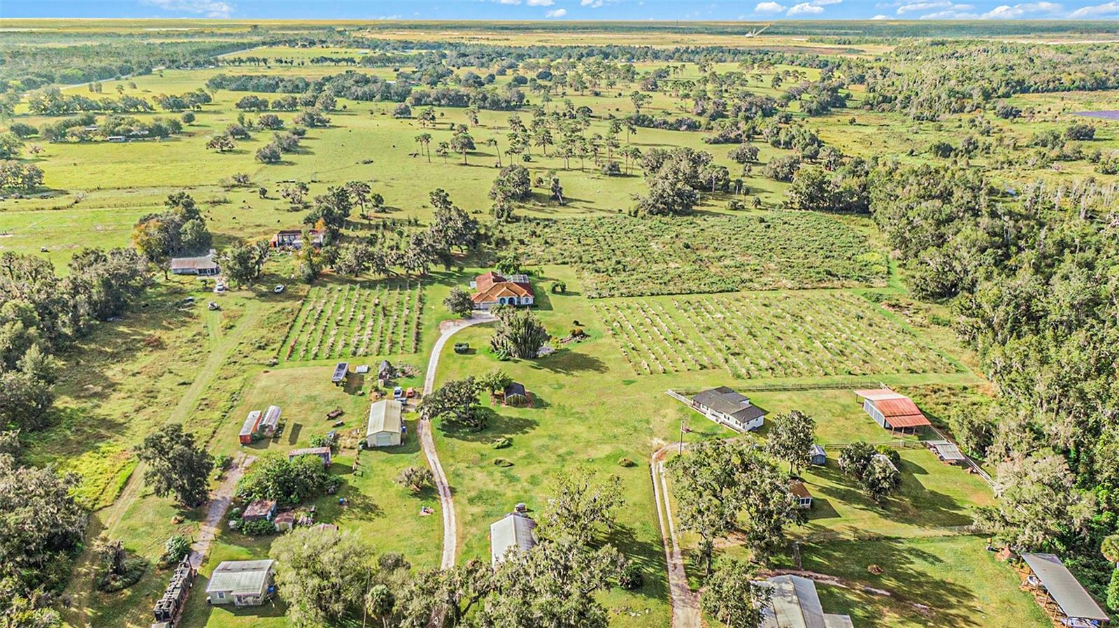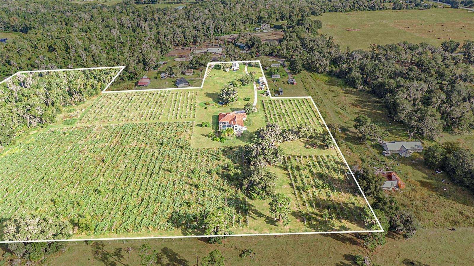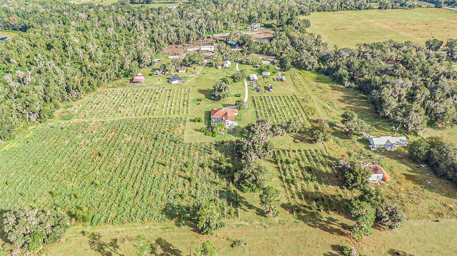 Looking for a wide-open space with country views, sounds of nature, yet close enough to shopping? This property offers the perfect blend of space and freedom, located in the desirable Hillsborough area with no HOA and no CDD fees. Enjoy ample room to roam and the ability to bring all your toys—whether it's RVs, boats, or other recreational vehicles. Don’t miss out on this chance to own a slice of Hillsborough without the restrictions! The pool and pool decking freshly resurfaced. The outdoor kitchen has a new stainless steel mini fridge installed. Surrounded by a cattle ranch is a 22-acre property, 10 acres of which is inactive vineyard. The main house is a 2,914 square foot (under roof) Mediterranean style, single story with 9 rooms. There are 4 bedrooms and 3 full baths in main home. A vaulted family room, kitchen, dining room, living room, den, and breakfast nook make up the remaining rooms. All ceilings are 10 feet high, except for the family room that vaults to 14 feet and front entryway which has a 12-foot ceiling. Vinyl flooring can be found in the study and tile in the kitchen and bathrooms while the rest of the house has bleached oak wood floors. A three-car garage, a screened in pool and spa, and a lanai equipped with outdoor grill, sink and refrigerator, complete the layout of the home. This beautiful Arthur Ruthenberg inspired home is perfect for its placement, surrounded by lush oak trees with windows and sliding glass doors that look out on the green yard. Additionally, the property has 7 acres of untouched woods with a stream running through it and a small trail to view untouched Florida. There is a second wood frame house that can be used for visiting guests, or parents’ home. It is 1052 sq. ft. with 2 bedrooms, 1 bath, a living room, kitchen and a front porch. A large-sized enclosed shed with a sheltered area is used for all the equipment and tools used to maintain the property. An 18' x 24' Greenhouse and a 12' x 24' Shade house are on the property. Appliances included dishwasher, dryer, garbage disposal, microwave, range/oven, refrigerator, washer, wine fridge. Don't miss out on the chance to own this home and immerse yourself in the serenity, functionality, and tranquility of perfect harmony. Preferred lender is offering special financing incentives towards closing costs and rate buydowns.