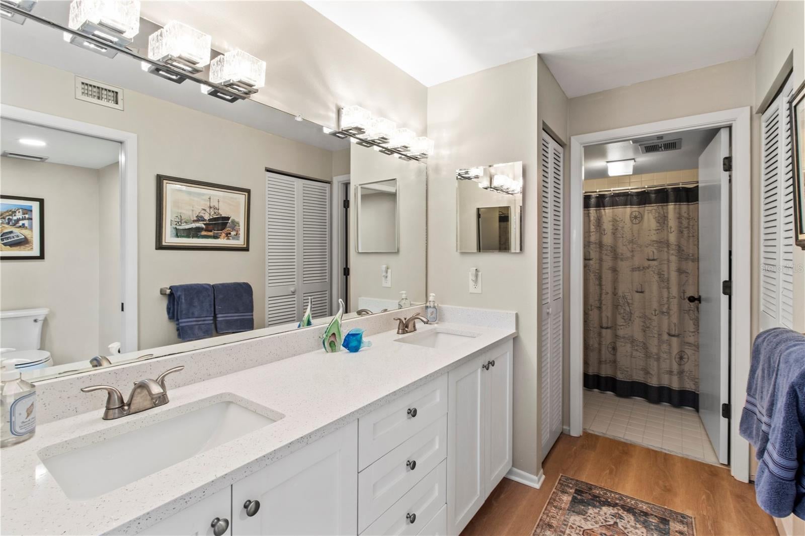 Seasonal rental in Bayport Beach and Tennis Club which is a beautiful, established, award-winning, amenity-rich community with immediate access to a peaceful private beach that continues in both directions for miles along the Gulf of Mexico shore. The complex includes a large pool surrounded by flowering trees, four immaculately maintained clay tennis courts, fitness center, a large clubhouse, bike trails, and a private fishing pier on the bay side surrounded by mangroves. Turnkey furnished on the upper level of a quiet end unit, including two full bedrooms - one with a king bed and the other with two twin beds. You can see the Gulf from the entrance and the guest bedroom. Each bedroom has its own bathroom; the guest bath has a shower and the master bath has double sinks and a bathtub. The kitchen has granite countertops and there is a separate tiled dining area with a glass table, that seats up to six. There is also seating in the kitchen at a granite counter. The living room has comfortable, large couch with an entertainment unit. The condo has a lanai overlooking lovely tropical gardens. In unit washer/dryer. Nearby is a convenient grocery store, great restaurants, museums, galleries, marinas and shops at St. Armand’s Circle. One covered parking space is provided, with plenty of guest parking spaces.